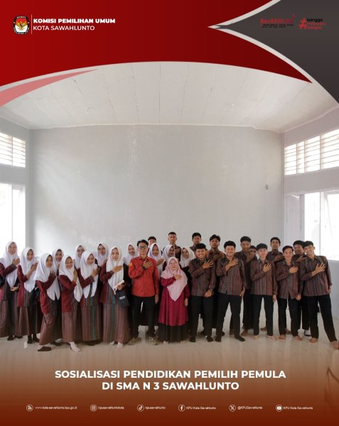 Senin (15/9) Ketua KPU Kota Sawahlunto laksanakan Sosialisasi kepada siswa/siswi di SMA N 1 Sawahlunto. Ini merupakan bentuk pendidikan pemilih kepada pemilih pemula yang ada di sekolah.