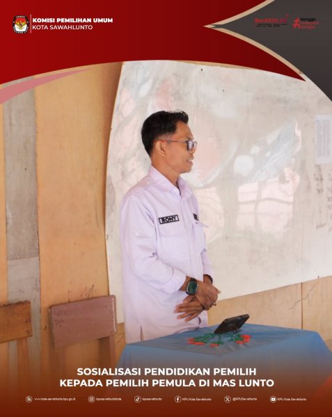 Senin (22/9) Anggota KPU Kota Sawahlunto Divisi Sosdiklih Parmas SDM laksanakan Sosialisasi kepada siswa/siswi di MAS Lunto. Ini merupakan bentuk pendidikan pemilih kepada pemilih pemula yang ada di sekolah.