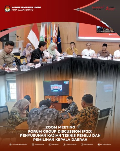 #TemanPemilih, KPU Kota Sawahlunto hadir dalam kegiatan Focus Group Discussion (FGD) "Penyusunan Kajian Teknis Pemilu dan Pemilihan Kepala Daerah" secara Daring melalui Zoom Meeting yang dilaksanakan oleh KPU Provinsi Sumatera Barat pada Rabu (24/09/2025).