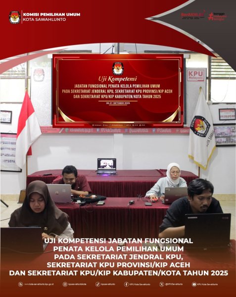 TemanPemilih, Sebanyak 5 (lima) orang PNS Sekretariat KPU Kota Sawahlunto ikuti Uji Kompetensi Penata Kelola Pemilihan Umum Ahli Pertama pada Sekretariat KPU Provinsi/KIP Aceh dan Sekretariat KPU/KIP Kabupaten/Kota, Kamis (30/10).