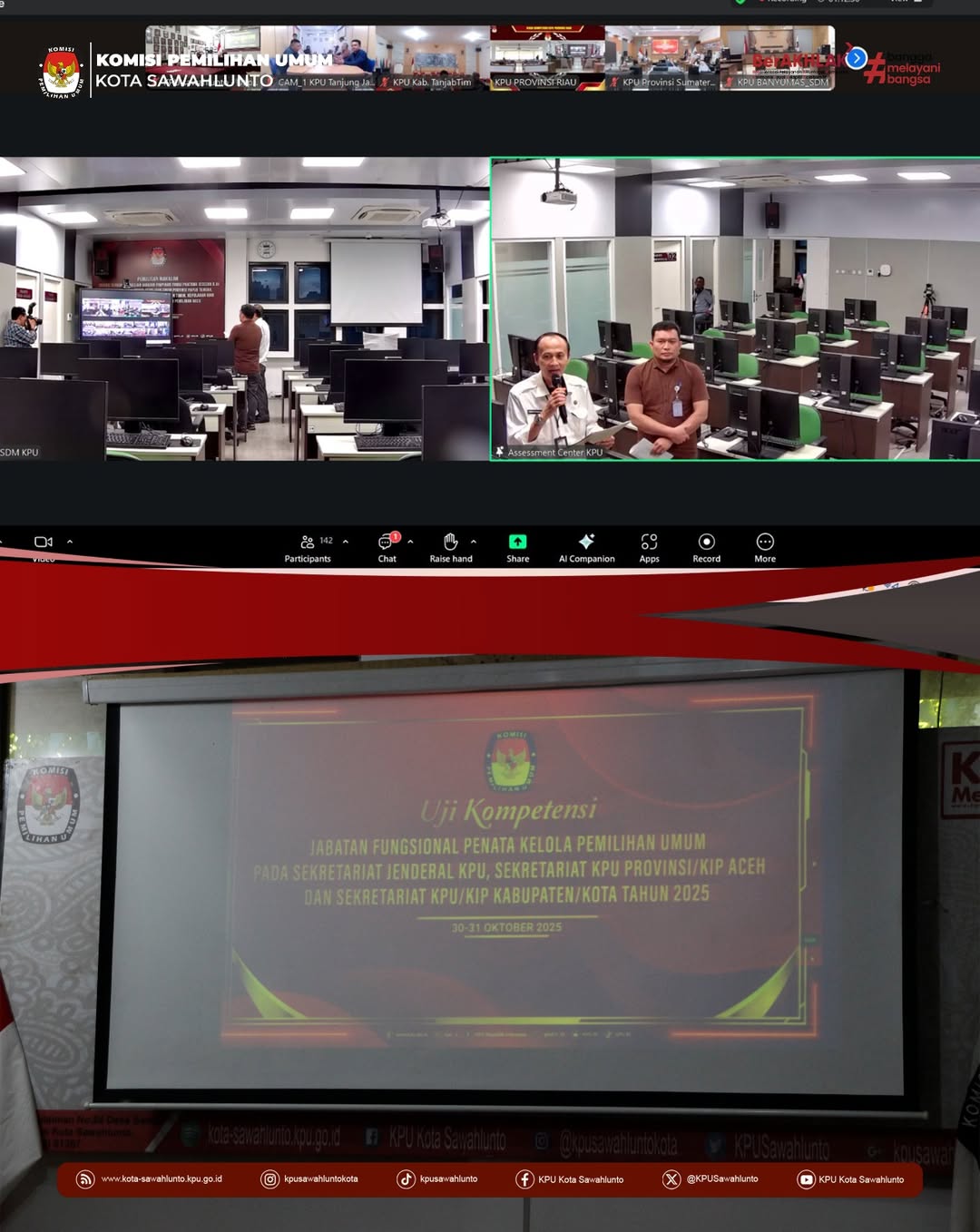 Ujian dilaksanakan secara online dengan sistem CAT dan dipantau oleh KPU RI melalui zoom meeting dengan peserta ujian hadir secara fisik di masing-masing di Kantor Sekretariat masing-masing. Untuk KPU Kota Sawahlunto, 1 (satu) orang peserta hadir dari rumah karena dalam kondisi sakit.