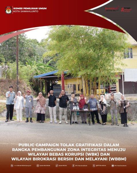 #TemanPemilih KPU Kota Sawahlunto laksanakan Public Campaign Tolak Gratifikasi dalam rangka Pembangunan Zona Integritas menuju Wilayah Bebas Korupsi (WBK) dan Wilayah Birokrasi Bersih dan Melayani (WBBM) pada Jum’at (14/11).