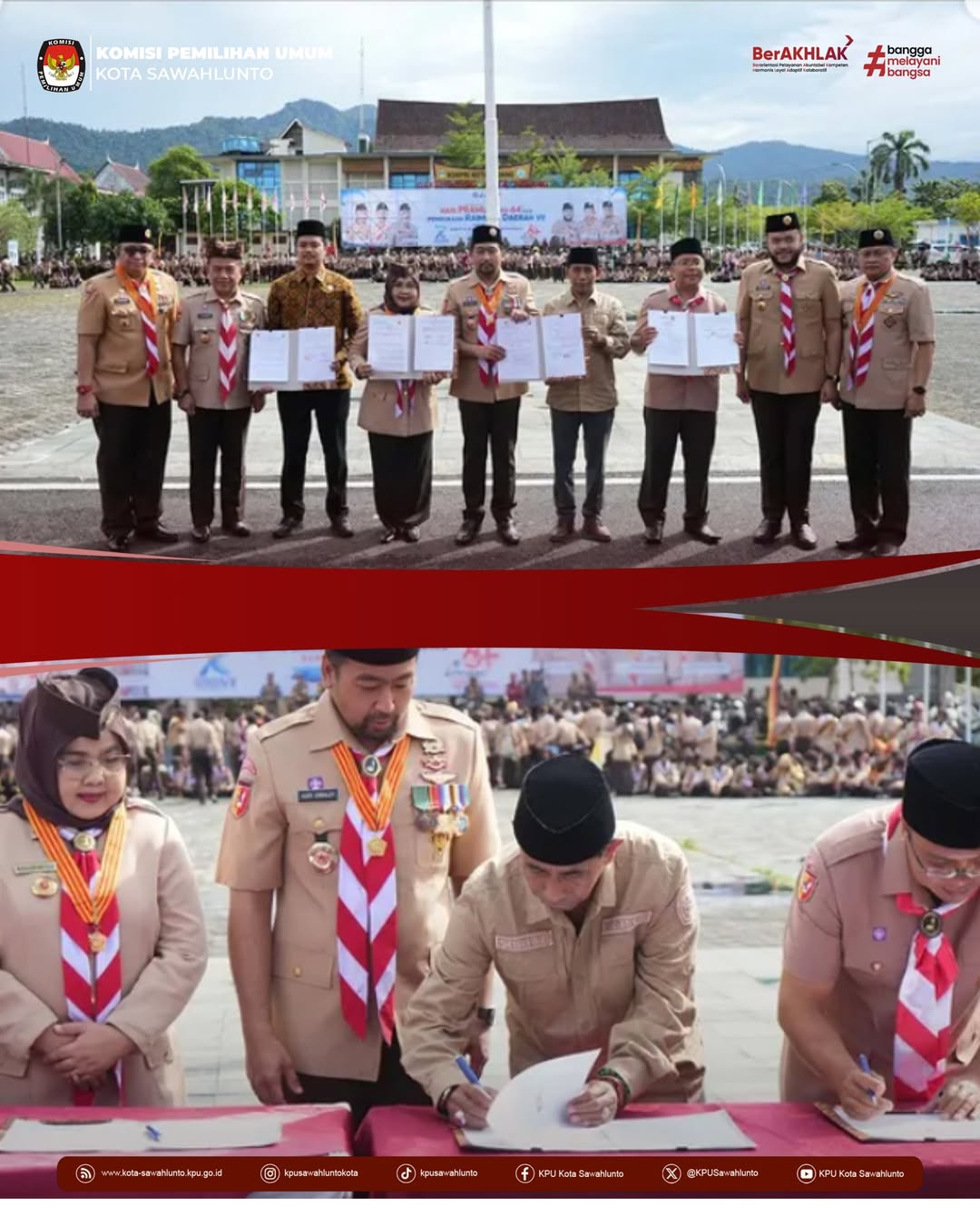 #TemanPemilih KPU Kota Sawahlunto hadiri Penandatanganan Nota Kesepahaman antara KPU Provinsi Sumatera Barat dan Kwarda 03 Gerakan Pramuka Provinsi Sumatera Barat tentang Pembentukan Saka Pramuka Rintisan Yogaswara, Selasa (18/11) di Lapangan Upacara Apeksi Balai Kota Padang.