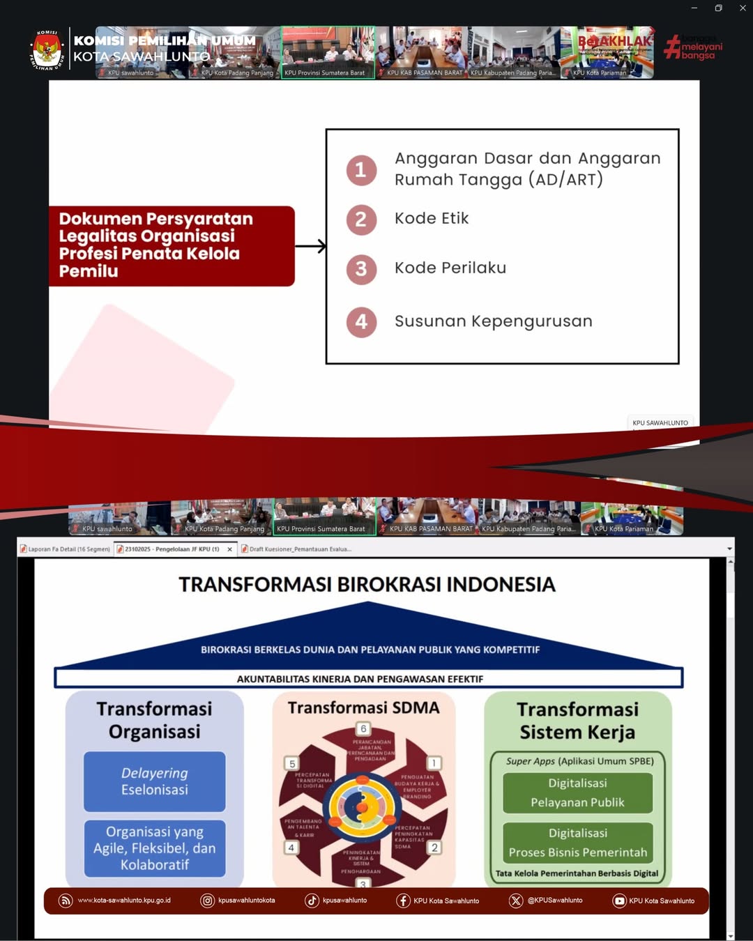 #TemanPemilih KPU Kota Sawahlunto ikuti Sosialisasi Penguatan Pelatihan e-Learning melalui Aplikasi SIMPEL yang diselenggarakan oleh KPU Sumbar bersama Tim PKSDM KPU RI, Senin (8/12) via zoom meeting.