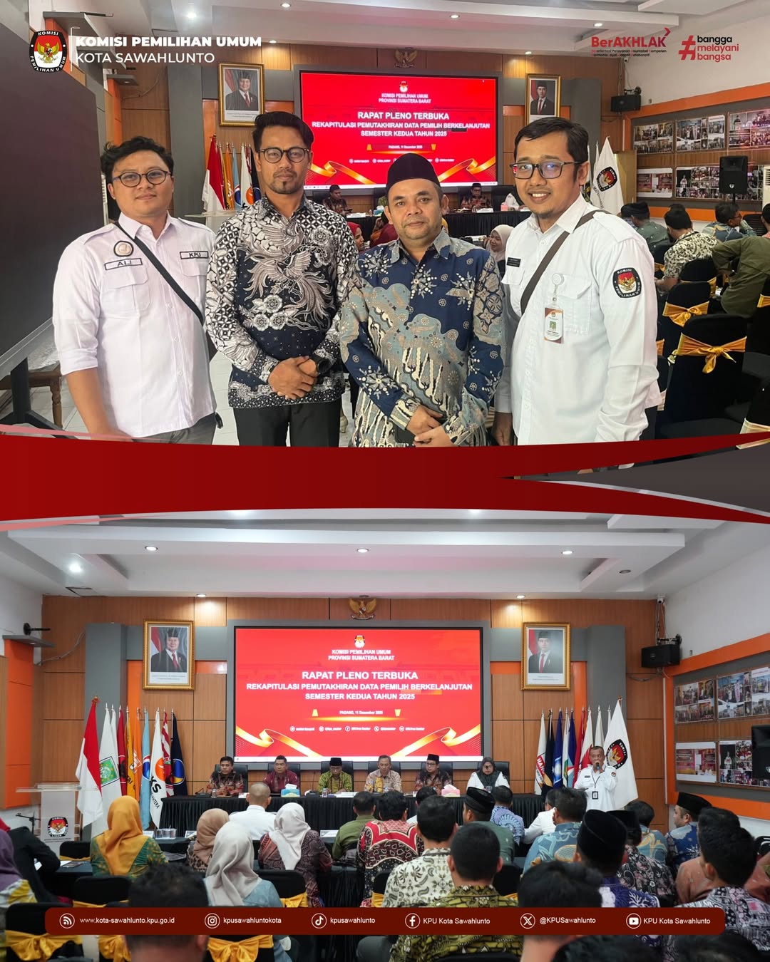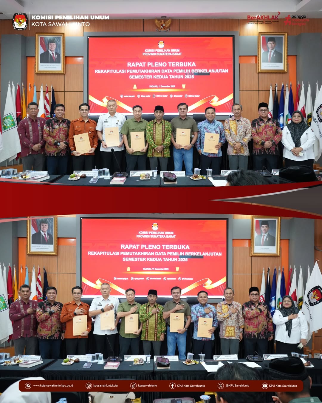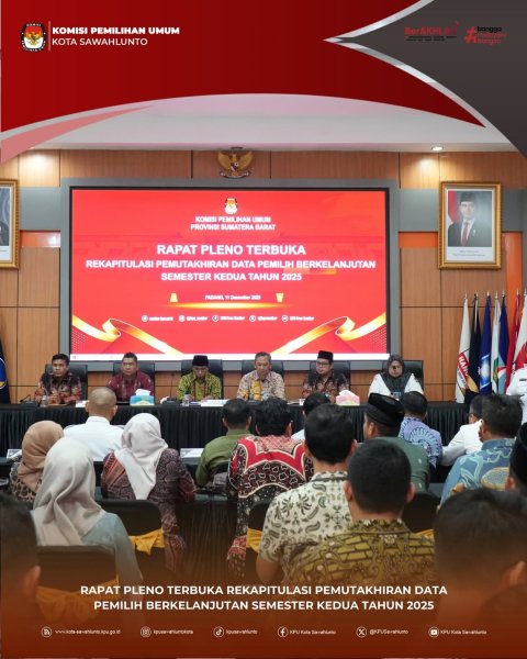 #TemanPemilih, Rabu dan Kamis (10–11/12), KPU Kota Sawahlunto hadiri undangan KPU Provinsi Sumatera Barat dalam agenda Rapat Kerja Persiapan dan Pleno Terbuka Rekapitulasi Pemutakhiran Data Pemilih Berkelanjutan (PDPB) Semester 2 tingkat Provinsi.