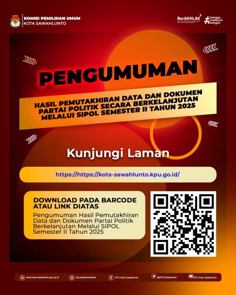 Berikut Kami Umumkan Hasil Pemutakhiran Data Dan Dokumen Partai Politik Secara Berkelanjutan Melalui Sipol Semester II Tahun 2025