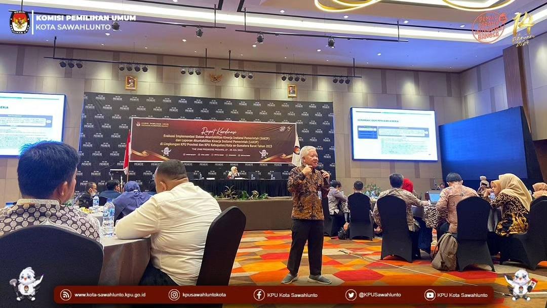 Sawahlunto, kota-sawahlunto.kpu.go.id - KPU Kota Sawahlunto menghadiri undangan dari KPU Provinsi Sumatera Barat dalam rangka Rapat Koordinasi Evaluasi Implementasi Sistem Akuntabilitas Kinerja Instansi Pemerintah (SAKIP) dan Laporan Akuntabilitas Kinerja Instansi Pemerintah (LAKIP). Peserta kegiatan ini yaitu Ketua Divisi Perencanaan, Data dan Informasi, Sekretaris, Kepala Sub Bagian Perencanaan, Data dan Informasi dan Operator Aplikasi SAKIP pada masing-masing KPU Kabupaten/Kota Se-Sumatera Barat. Kegiatan dilaksanakan selama dua (2) hari yakni Kamis s.d Jum'at (27 s.d 28 Juli 2023) di The Zuri Hotel Manajement (ZHM) Premiere Padang