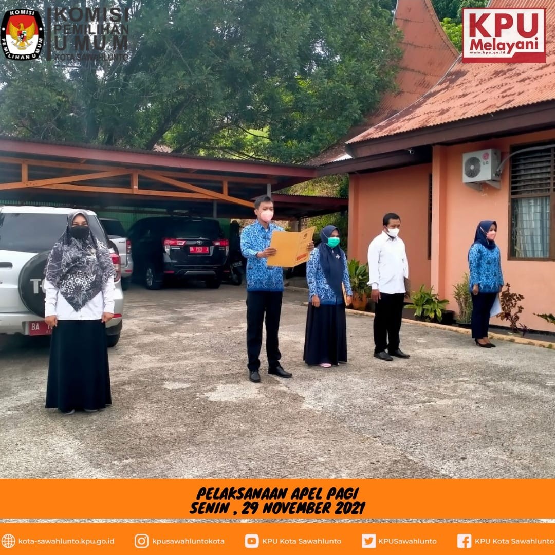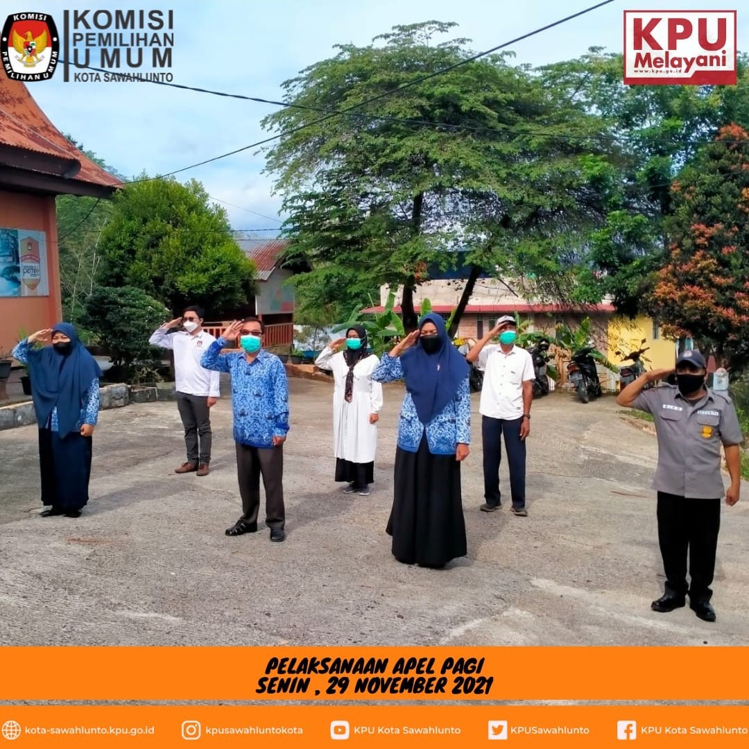 Sawahlunto, kota-sawahlunto.kpu.go.id – Minggu terakhir di bulan November 2021, KPU Kota Sawahlunto pada hari Senin (29/11) melaksanakan apel pagi yang diikuti oleh Komisioner dan Sekretariat yang hadir. Apel dilaksanakan dengan menerapkan protokol kesehatan.