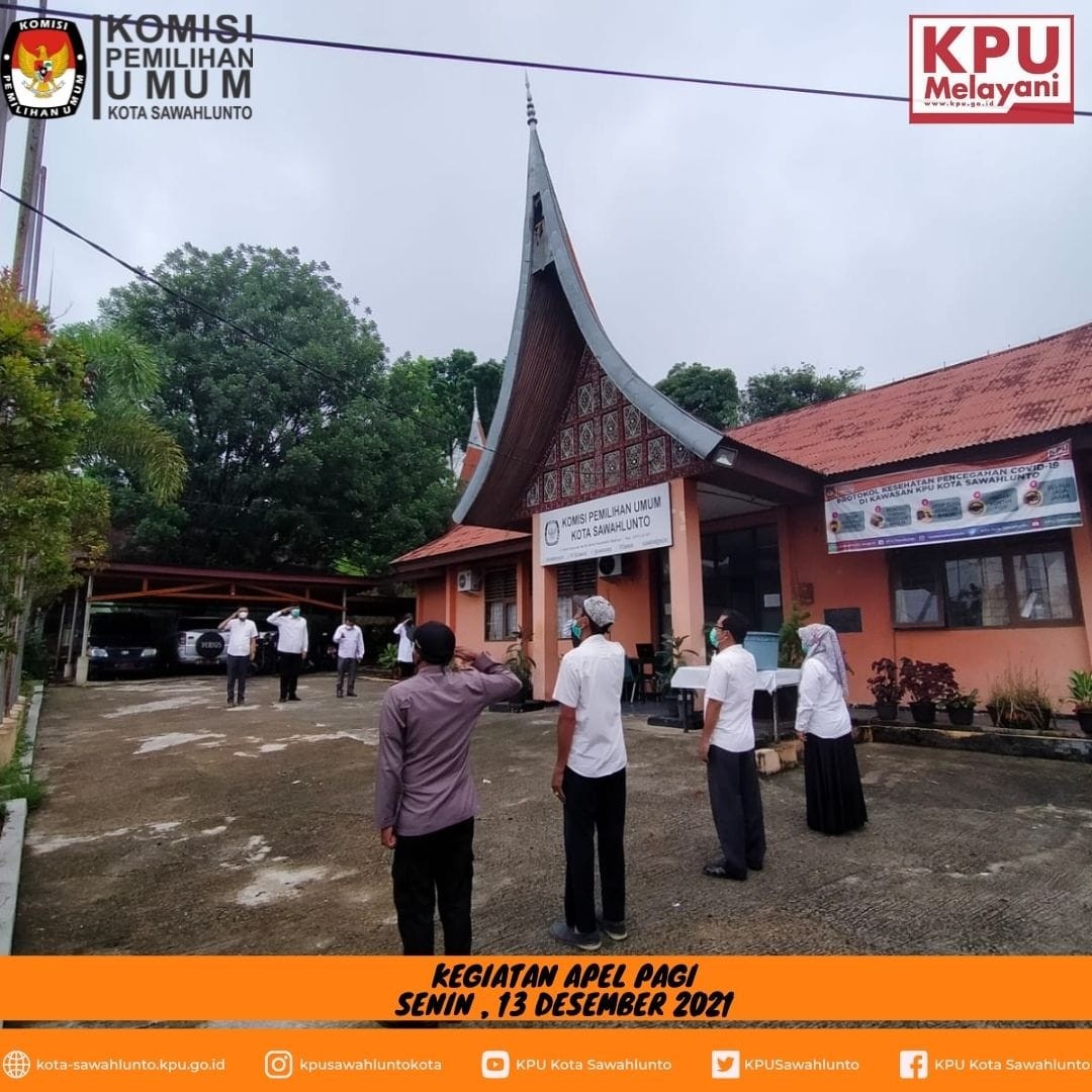 Sawahlunto, kota-sawahlunto.kpu.go.id – Memasuki minggu ketiga dibulan Desember 2021, KPU Kota Sawahlunto pada hari Senin (13/12) melaksanakan apel pagi yang diikuti oleh Sekretariat yang bertugas hari ini. Apel dilaksanakan dengan menerapkan protokol kesehatan. Agenda apel diawali dengan penghormatan kepada bendera merah putih diiringi lagu Indonesia Raya, dilanjutkan dengan mengheningkan cipta, pembacaan pancasila, pembukaan UUD 1945 dan panca prasetya korp pegawai RI.