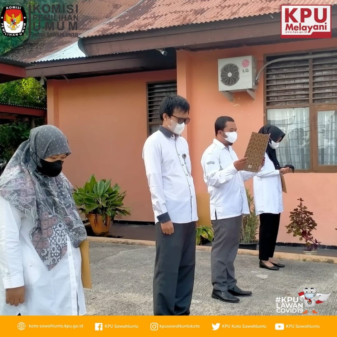 Sawahlunto, kota-sawahlunto.kpu.go.id – KPU Kota Sawahlunto kembali melaksanakan apel pagi yang diikuti oleh Komisioner dan Sekretariat. Apel dilaksanakan dengan tetap menerapkan protokol kesehatan.