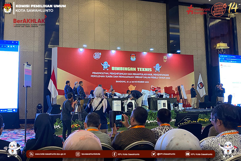 Sawahlunto, kota-sawahlunto.kpu.go.id - KPU Kota Sawahlunto mengikuti Bimbingan Teknis Pemungutan, Penghitungan dan Rekapitulasi Hasil Penghitungan Perolehan Suara dan Penggunaan Sirekap dalam Pemilu tahun 2024, di Kota Bandung pada tanggal 25 s.d 28 November 2023. Kegiatan ini diikuti oleh Seluruh KPU Provinsi dan Kab/Kota se Indonesia, dalam hal ini Divisi Teknis Penyelenggaraan dan Divisi Perencanaan, Data dan Informasi , Staf/Operator Sirekap dan Staf/Operator Sidalih KPU Kota Sawahlunto.