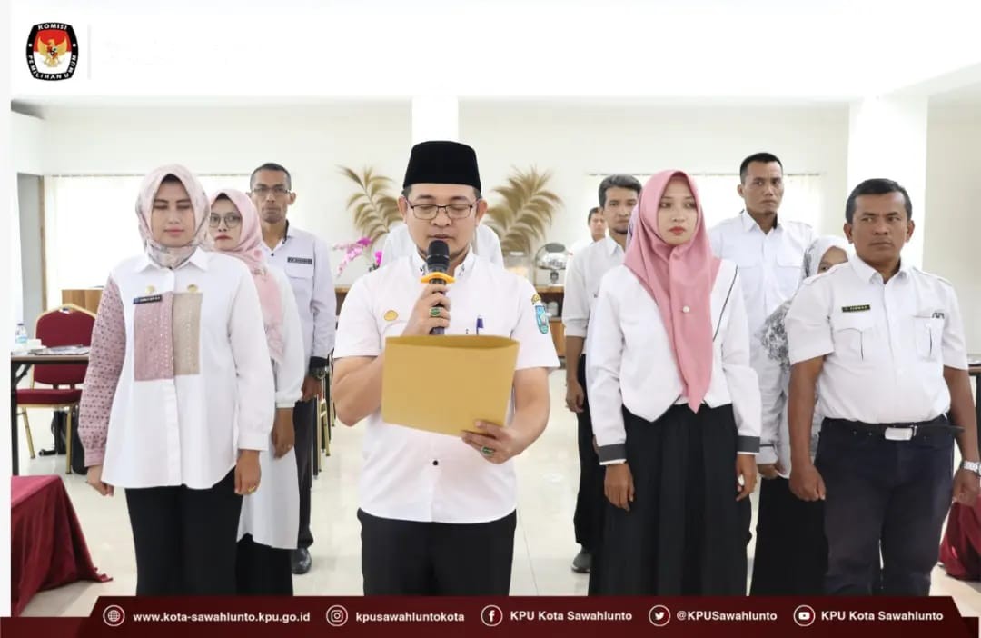 Sawahlunto, kota-sawahlunto.kpu.go.id - KPU Kota Sawahlunto melakukan Penetapan dan Bimbingan Teknis terhadap Sekretariat Panitia Pemilihan Kecamatan (PPK) untuk 4 (Empat) Kecamatan yang ada di Kota Sawahlunto. Kegiatan dilaksanakan di Khas Ombilin Hotel Kota Sawahlunto Rabu (11/1) mulai pada pukul 09.00 WIB. Penetapan ini dilakukan dengan penandatanganan pakta integritas atas 12 (dua belas) orang Sekretariat PPK se-Kota Sawahlunto.