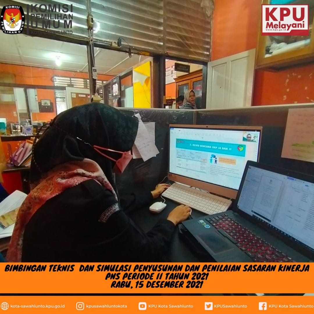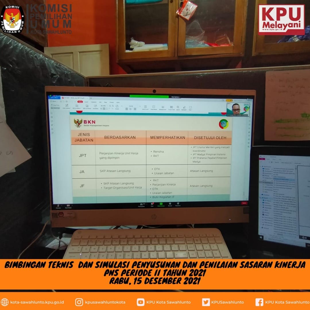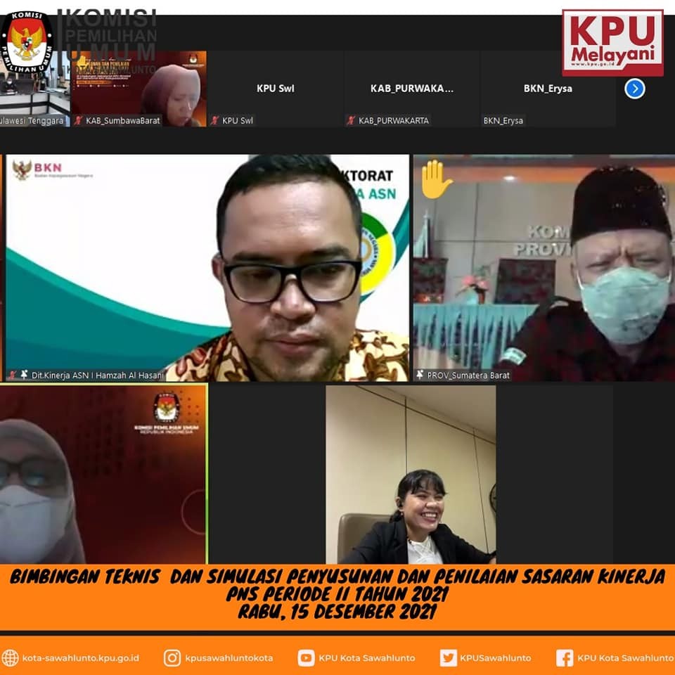 Sawahlunto, kota-sawahlunto.kpu.go.id – Rabu (15/12), KPU Kota Sawahlunto mengikuti kegiatan Bimbingan Teknis dan Simulasi Penyusunan dan Penilaian Sasaran Kinerja PNS (SKP) Periode II Tahun 2021 via Zoom Meeting yang diadakan oleh KPU RI pada pukul 09.00 WIB. Kegiatan ini diikuti oleh seluruh Pegawai Sekretariat KPU Kota Sawahlunto, baik dari unsur Pimpinan hingga staf Pelaksana.