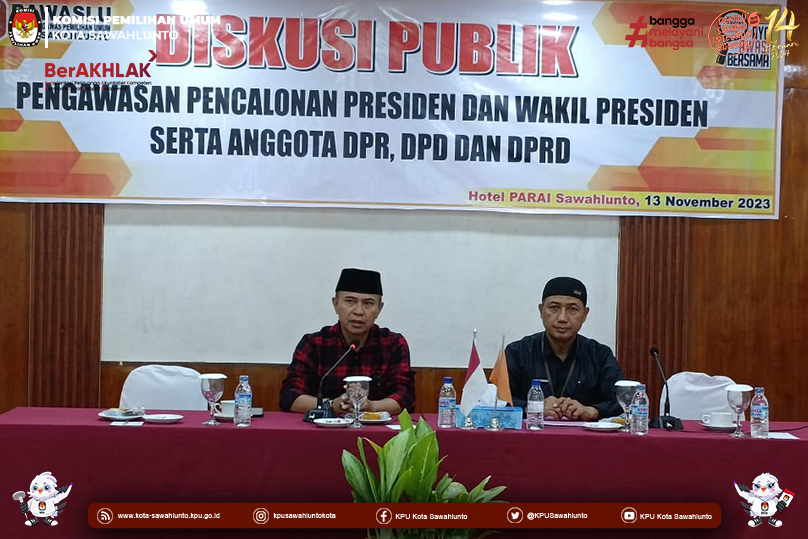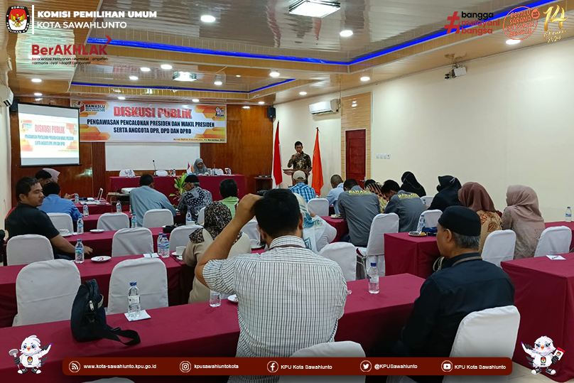 Diskusi Publik Pengawasan Pencalonan Presiden dan Wakil Presiden serta Anggota DPR, DPD dan DPRD yang diselenggarakan oleh Bawaslu Kota Sawahlunto