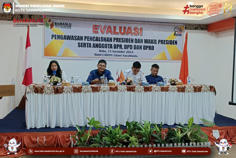 Sawahlunto, kota-sawahlunto.kpu.go.id - KPU Kota Sawahlunto menghadiri Undangan Bawaslu Kota Sawahlunto perihal Evaluasi Pengawasan Pencalonan Presiden dan Wakil Presiden serta DPR, DPD dan DPRD di Hotel Cahaya, Talawi, Rabu (15/11).