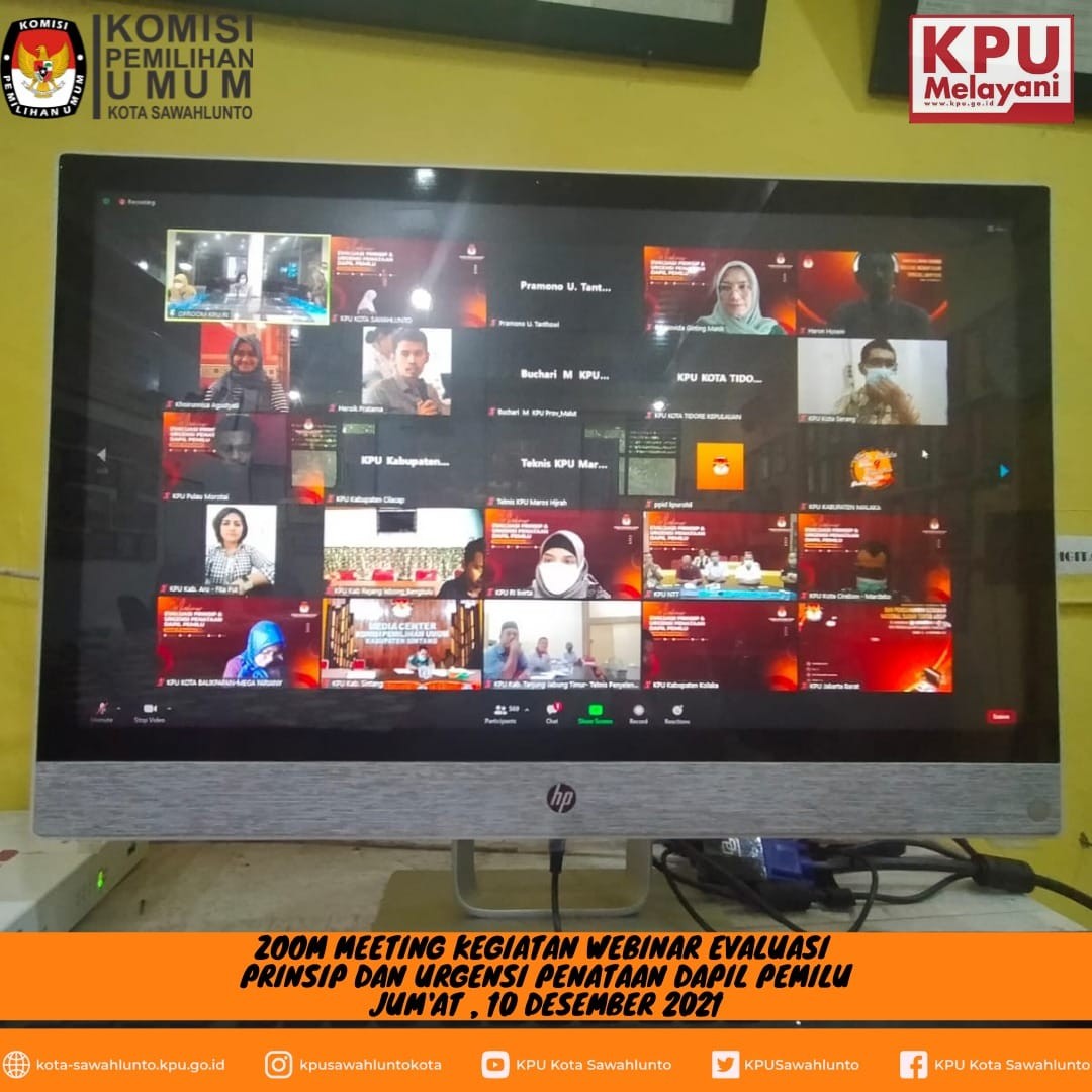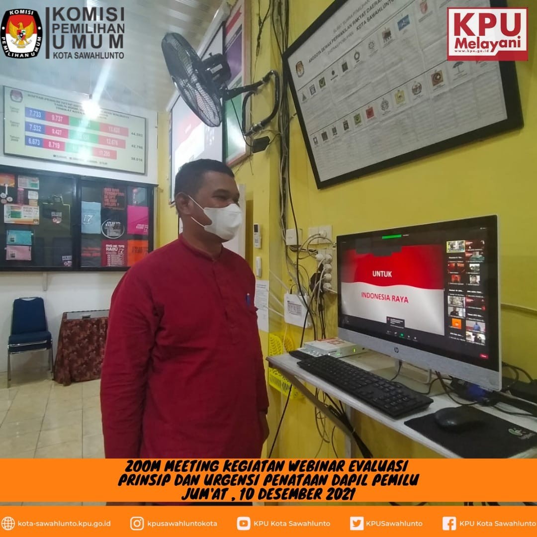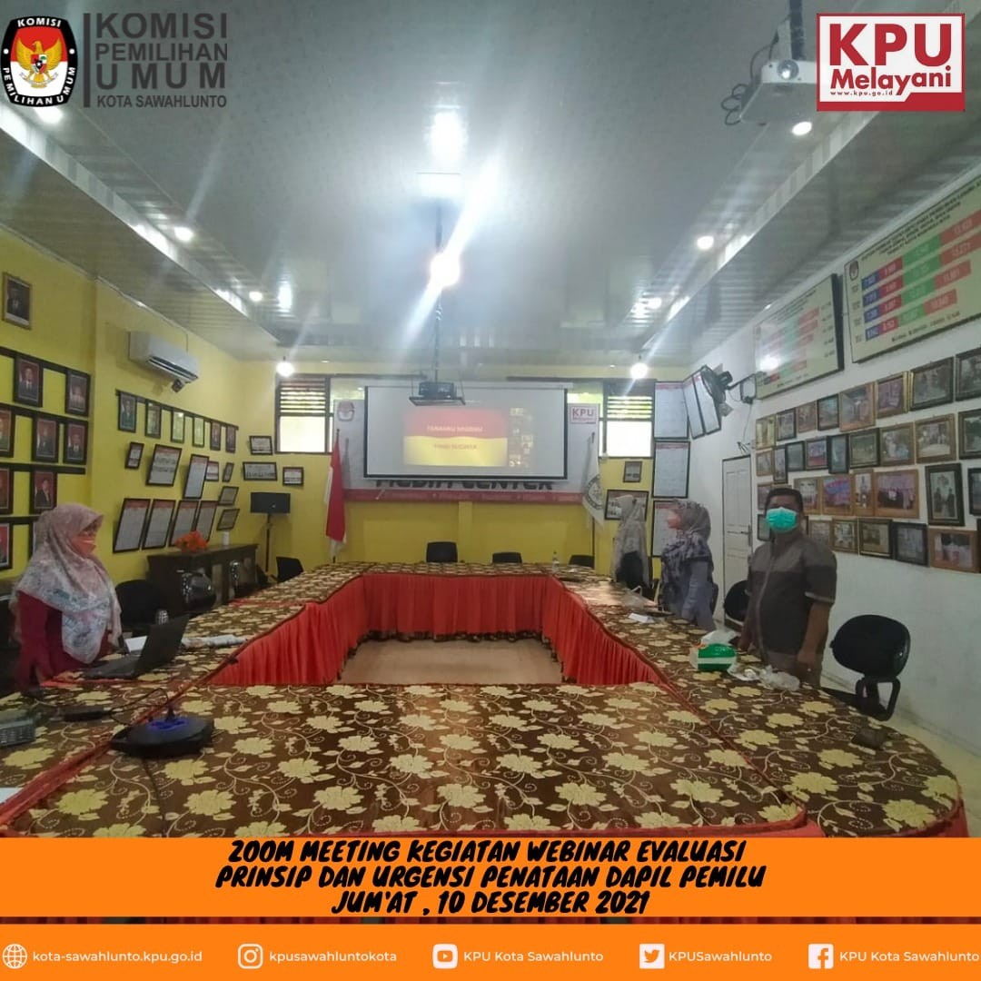 Sawahlunto, kota-sawahlunto.kpu.go.id – Jum’at (10/12) KPU Kota Sawahlunto mengikuti kegiatan Webinar "Evaluasi Prinsip dan Urgensi Penataan Dapil Pemilu" yang diadakan KPU RI via zoom meeting. Kegiatan dimulai pukul 13.00 WIB dan diikuti oleh Ketua beserta Anggota KPU Kota Sawahlunto.