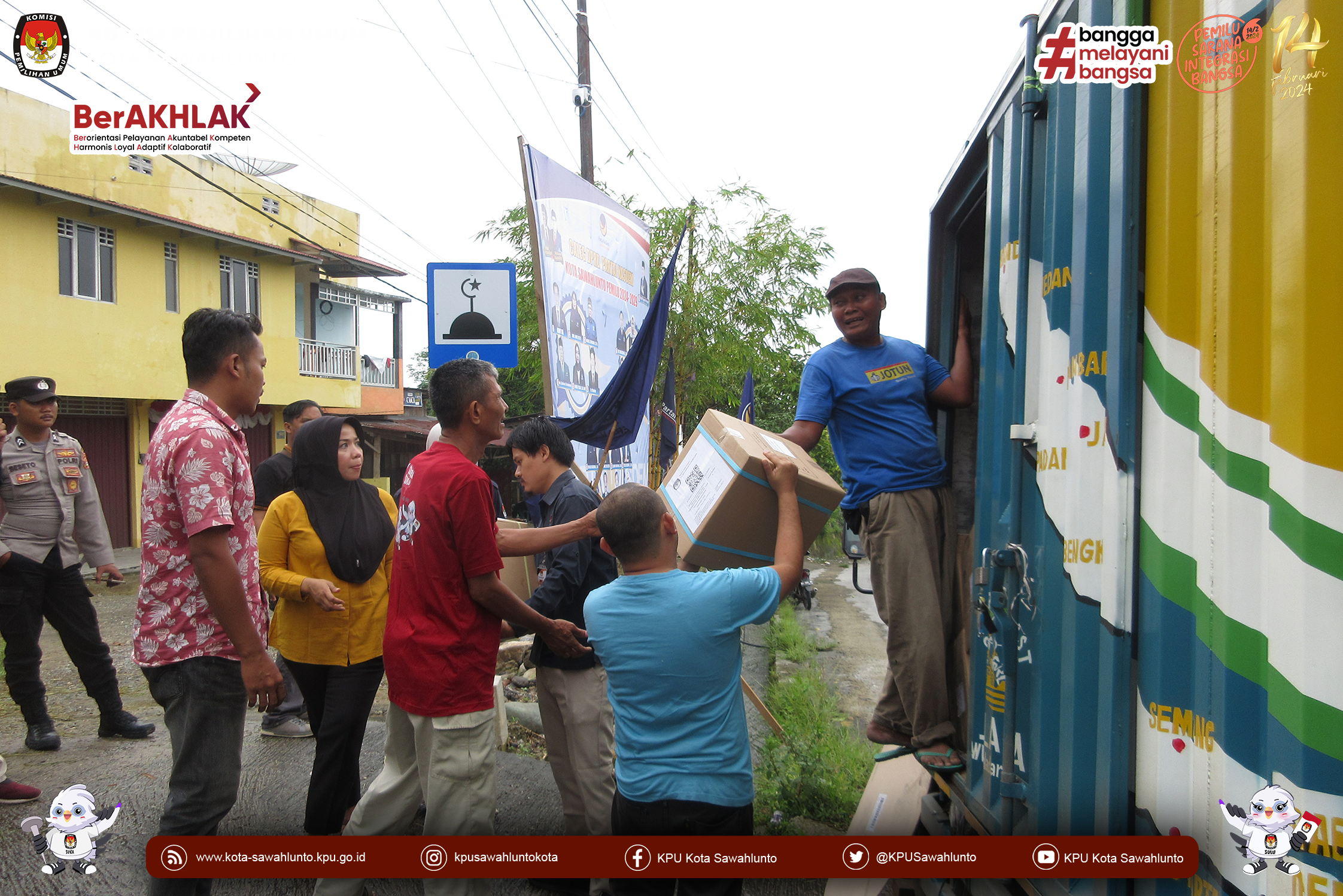 Sawahlunto, kota-sawahlunto.kpu.go.id - Ketua bersama Staf sub bagian Keuangan, Umum dan Logistik KPU Kota Sawahlunto menerima kedatangan logistik Pemilu 2024 berupa sampul kertas sebanyak 17 (Tujuh Belas) Kotak yg terdiri dari 10 jenis sampul untuk Kebutuhan Pemilu 2024 di KPU Kota Sawahlunto.