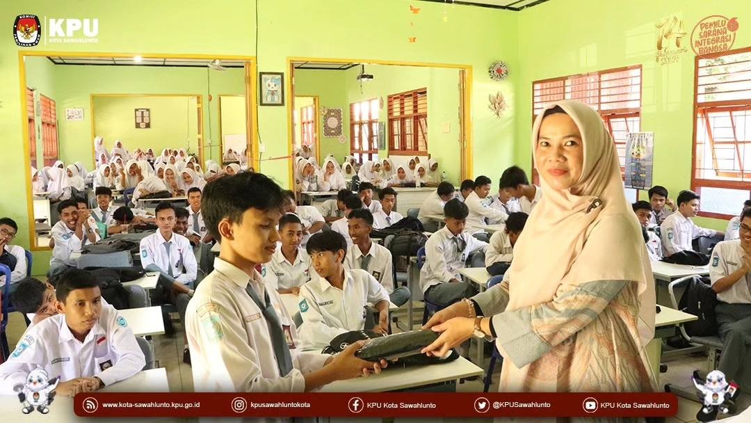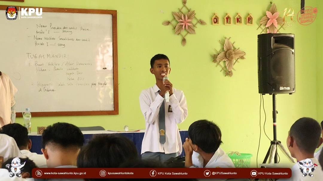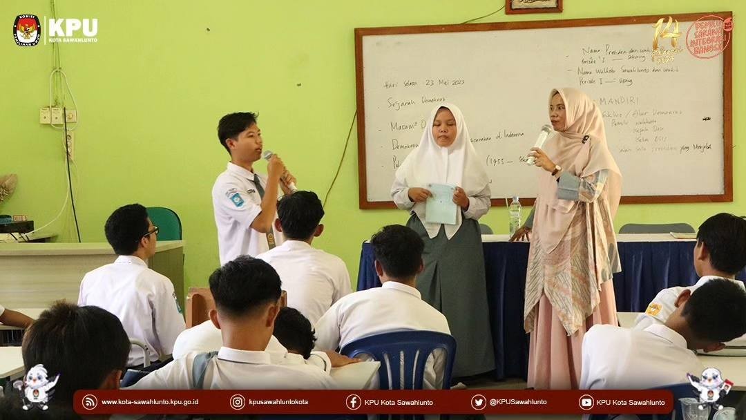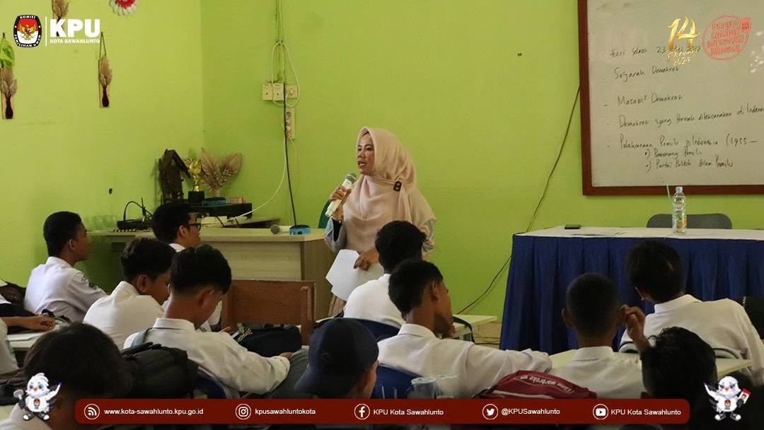 Sawahlunto, kota-sawahlunto.kpu.go.id - Divisi Sosialisasi, Pendidikan Pemilih, Parmas dan SDM KPU Kota Sawahlunto Desy Fardila menjadi narasumber dalam kegiatan Projek Penguatan Profil Pelajar Pancasila (P5) yang diselenggarakan oleh SMKN 1 Sawahlunto, Senin (22/05) Pukul 10.00 s.d 12.00 WIB.