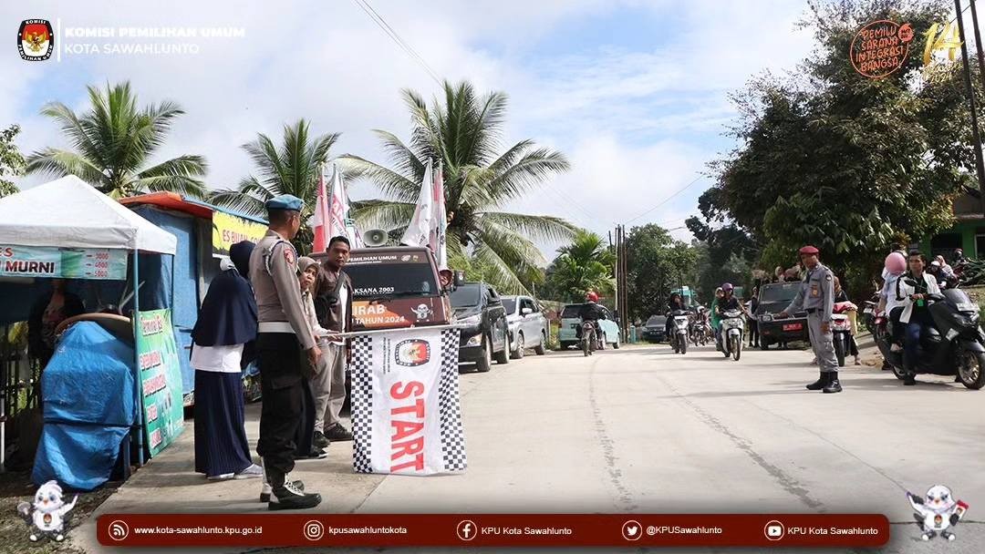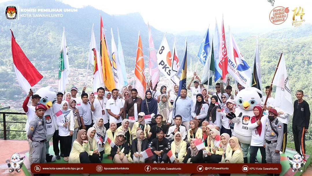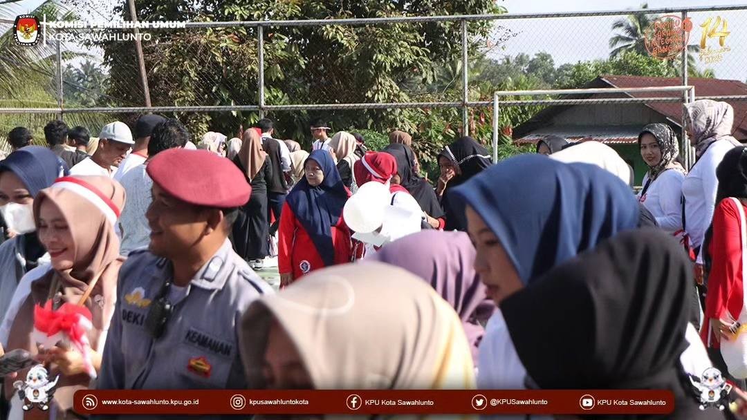 Sawahlunto, kota-sawahlunto.kpu.go.id - Pelaksanaan Kirab Pemilu Tahun 2024 Jalur I (Asal Aceh) di Kota Sawahlunto pada hari keenam, Sabtu (8/7). Kegiatan diawali dengan sosialisasi dalam kegiatan senam pagi yang dimulai pukul 07.30 WIB di Lapangan Rumah Empat Sungai Durian bersama masyarakat Kecamatan Barangin. Sosialisasi Pemilu 2024 yang disampaikan oleh Akhaswita Divisi Hukum dan Pengawasan KPU Kota Sawahlunto dan setelah pelaksanaan senam dilanjutkan dengan mengadakan games Kepemiluan dalam bentuk Games Balon Pemilu, Games Lompatan Pemilih dan Games Coblos Yuk dan pemenang mendapatkan doorprize/merchandice menarik. Kegiatan selanjutnya arak-arakan mobil Bendera Kirab mengelilingi Kecamatan Barangin dengan memperdengarkan jingle Pemilu 2024 dan Sosialisasi dengan pengeras suara untuk datang ke TPS 14 Februari 2024 dan pastikan sudah terdaftar sebagai pemili.Dan pada kesempatan ini