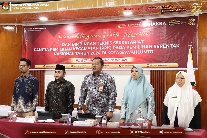 KPU Kota Sawahlunto laksanakan Penandatanganan Pakta Integritas Sekretariat dma Bimbingan Teknis Panitia Pemilihan Kecamatan (PPK) se-Kota Sawahlunto