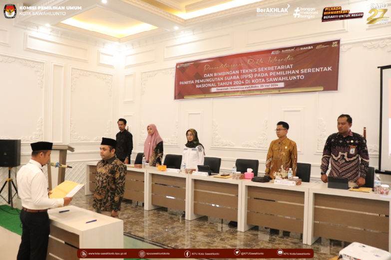 Sawahlunto, kota-sawahlunto.kpu.go.id - KPU Kota Sawahlunto laksanakan Penandatanganan Pakta Integritas untuk 111 orang Sekretariat Panitia Pemungutan Suara (PPS) untuk Pemilihan Serentak Nasional tahun 2024, Rabu (29/5) di Savannah Convention Hall, Talawi, Kota Sawahlunto.