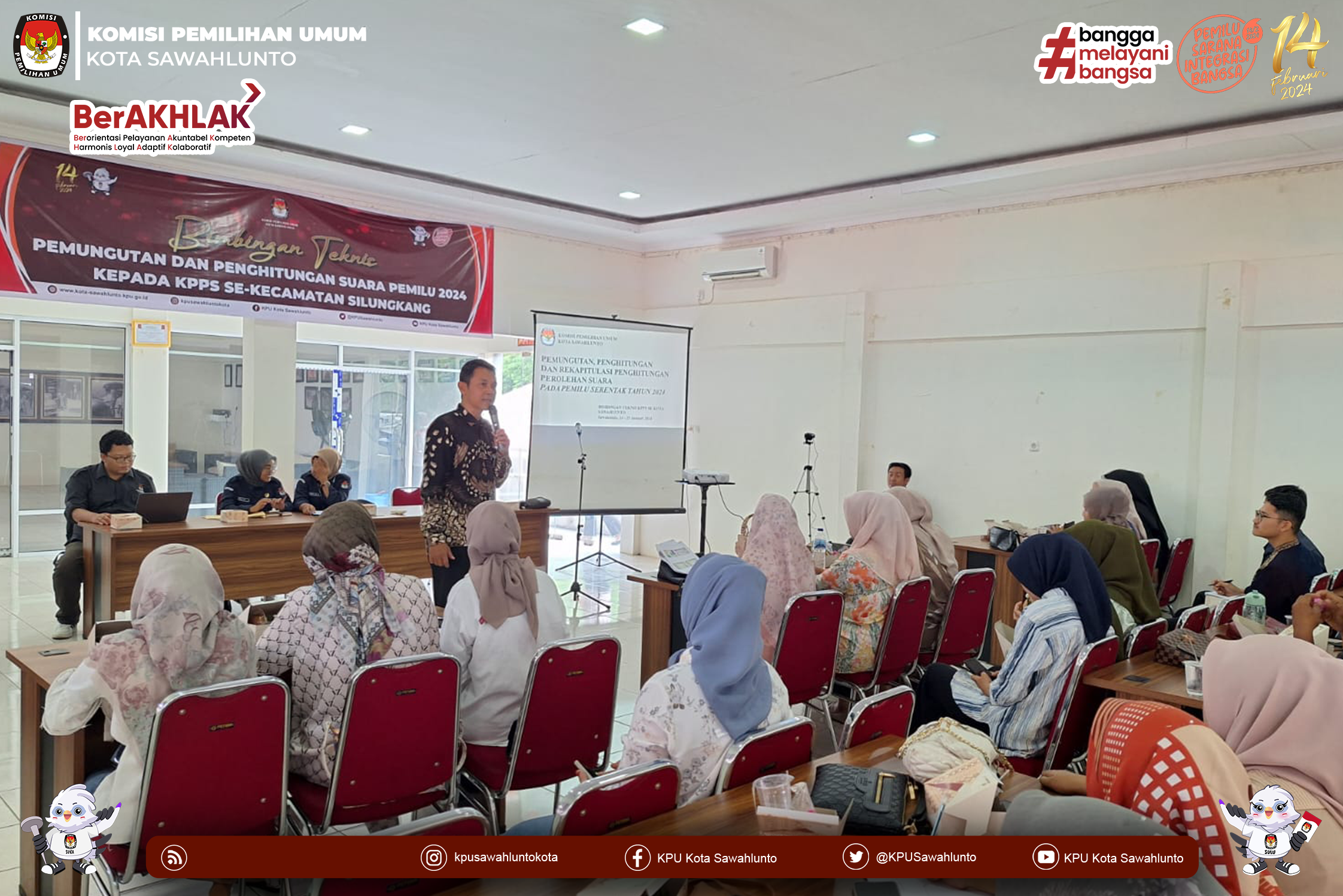 Sawahlunto, kota-sawahlunto.kpu.go.id - KPU Kota Sawahlunto laksanakan Supervisi dan Monitoring Bimbingan Teknis kepada Kelompok Penyelenggara Pemungutan Suara (KPPS) perihal Pemungutan dan Penghitungan Suara Pemilu tahun 2024, Jumat (26/1) di 4 titik lokasi yg tersebar di 4 Kecamatan. perihal Pemungutan dan Penghitungan Suara Pemilu tahun 2024, Jumat (26/1) di 4 titik lokasi yg tersebar di 4 Kecamatan.