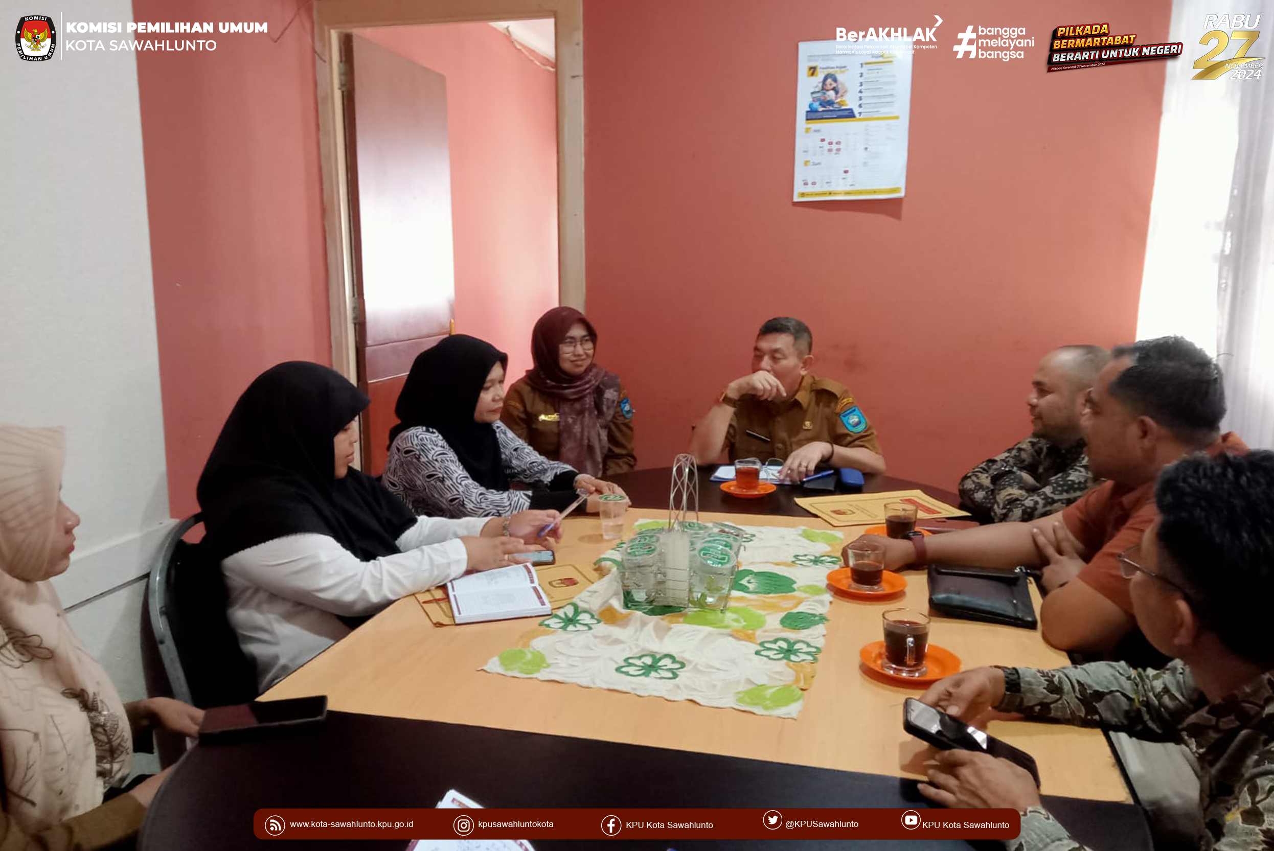 Sawahlunto, kota-sawahlunto.kpu.go.id - KPU Kota Sawahlunto lakukan Koordinasi dengan Pemerintah Kota Sawahlunto, dalam hal ini Pj Walikota Sawahlunto, Kepolisian Resor Sawahlunto, dan Dinas Komunikasi dan Informatika Kota Sawahlunto, Senin (10/6).