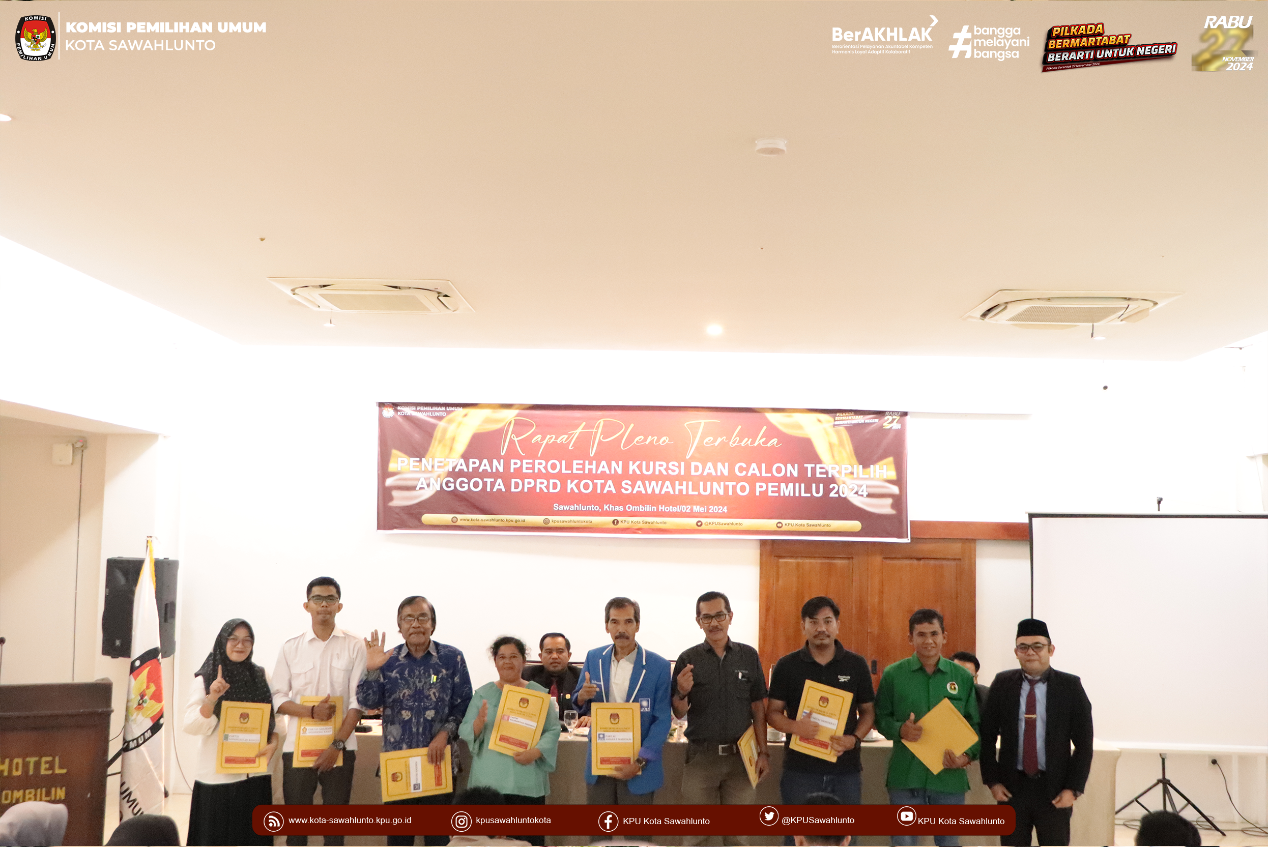 Dalam sambutannya Ketua menyampaikan bahwa KPU Kota Sawahlunto tidak masuk dalam registrasi sengketa Pemilu 2024 di Mahkamah Konstitusi dan pleno hari ini menjadi dasar untuk pelantikan anggota DPRD Kota Sawahlunto nantinya. KPU Kota Sawahlunto menetapkan 20 anggota DPRD terpilih yang tersebar dalam 3 dapil. Dengan telah ditetapkan anggota DPRD terpilih pemilu 2024 maka tahapan Pemilu di KPU sudah selesai.