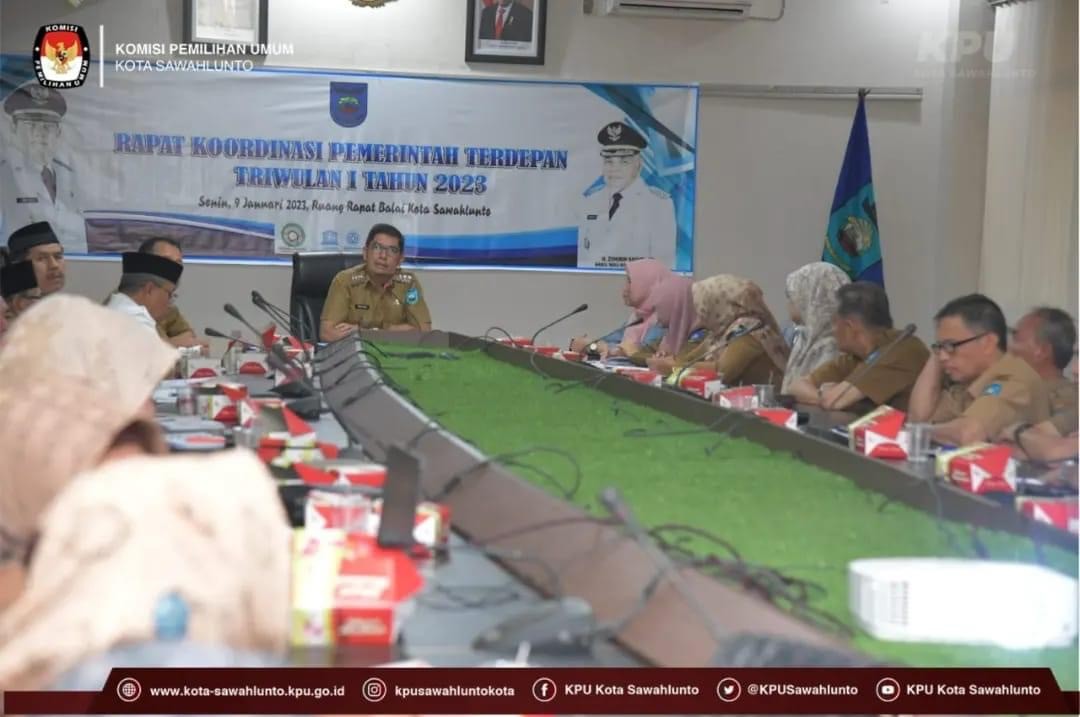 Sawahlunto, kota-sawahlunto.kpu.go.id - Senin (9/1) KPU Kota Sawahlunto memenuhi undangan dari Sekretariat Daerah Kota Sawahlunto perihal Rapat Koordinasi Pemerintahan Terdepan Triwulan I. Dalam acara ini KPU Kota Sawahlunto diminta untuk menjadi narasumber yang dalam hal ini diwakilkan oleh Desy Fardila Divisi Sosialisasi, Pendidikan Pemilih, Parmas dan SDM. Desy menyampaikan materi terkait Peraturan KPU Nomor 3 Tahun 2022 tentang Tahapan dan Jadwal Penyelenggaraan Pemilu 2024.