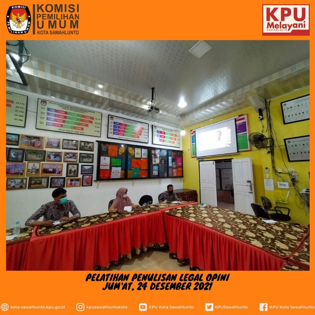 Sawahlunto, kota-sawahlunto.kpu.go.id – Komisi Pemilihan Umum (KPU) Kota Sawahlunto ikuti pelatihan Legal Opini yang diselenggarakan oleh KPU Provinsi Sumatera Barat, Jum'at (24/12). Kegiatan ini juga diikuti oleh Divisi Hukum dan Pengawasan, Kasubag Hukum serta Staf bagian hukum seluruh satuan kerja KPU Kabupaten/Kota se-Provinsi Sumatera Barat. Acara yang dimulai pukul 14.00 WIB ini, dibuka secara langsung oleh Ketua KPU Provinsi Sumatera Barat, Yanuk Sri Mulyani, S.H, M.Si.