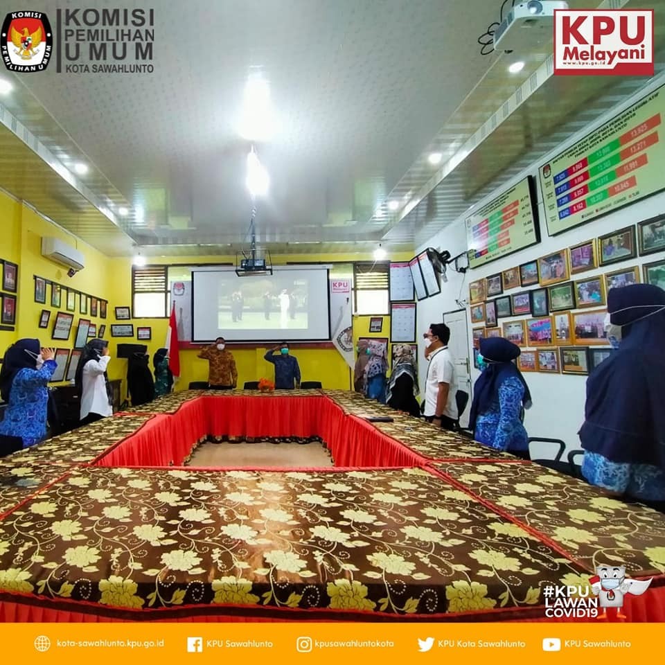 Kegiatan diikuti oleh seluruh Komisioner beserta Staf Sekretariat KPU Kota Sawahlunto secara virtual dari ruang rapat KPU Kota Sawahlunto pada pukul 08.00 WIB sampai selesai.