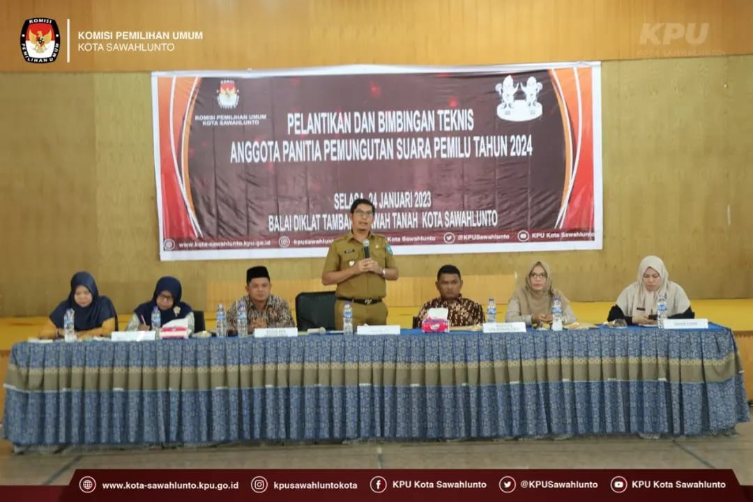 Sawahlunto, kota-sawahlunto.kpu.go.id - Selasa (24/1) KPU Kota Sawahlunto melakukan Pelantikan dan Bimbingan Teknis terhadap Panitia Pemungutan Suara (PPS) terpilih untuk 37 (Tiga Puluh Tujuh) Desa/Kelurahan yang ada di Kota Sawahlunto. Kegiatan dilaksanakan di Balai Diklat Tambang Bawah Tanah Kota Sawahlunto. Kegiatan ini dimulai pada pukul 09.00 WIB. Acara tersebut sekaligus pengambilan sumpah/janji dan penandatanganan pakta integritas atas 111 (seratus sebelas) orang PPS se-Kota Sawahlunto.