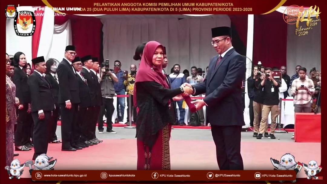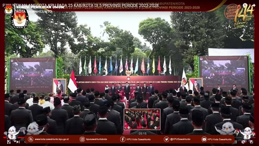Sawahlunto, kota-sawahlunto.kpu.go.id - Rabu (26/7) Komisi Pemilihan Umum Republik Indonesia melantik anggota KPU dari 25 Kabupaten/Kota pada 5 provinsi, yakni Sulawesi Selatan, Sulawesi Tengah, Sumatera Barat, Papua Barat dan Papua Barat Daya. KPU Kota Sawahlunto termasuk salah satu Kab/Kota yang hari ini dilakukan pelantikan terhadap Anggota KPU terpilih periode 2023-2028. Pelantikan dilaksanakan pada pukul 10.00 Wib di Halaman Kantor KPU RI.