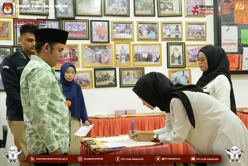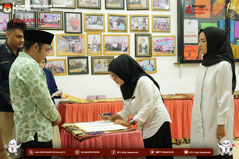 KPU Kota Sawahlunto melaksanakan Pelantikan PAW Anggota PPS Desa Santur dan Penandatanganan Pakta Integritas Sekretariat PPS Desa Muaro Kalaban, Sabtu (11/11). Pelantikan PAW tersebut dilaksanakan karena Anggota PPS Desa Santur yang sebelumnya meninggal dunia a.n Mayriswan, digantikan oleh Indriani Yuningsih. Sedangkan untuk Sekretariat PPS Desa Muaro Kalaban terjadi pergantian karena yang sebelumnya mengundurkan diri a.n Afrida Yanti dan digantikan oleh Lusi Asma Rani.