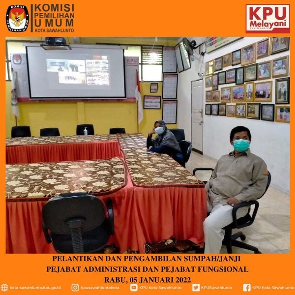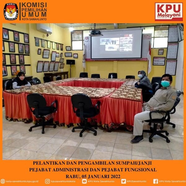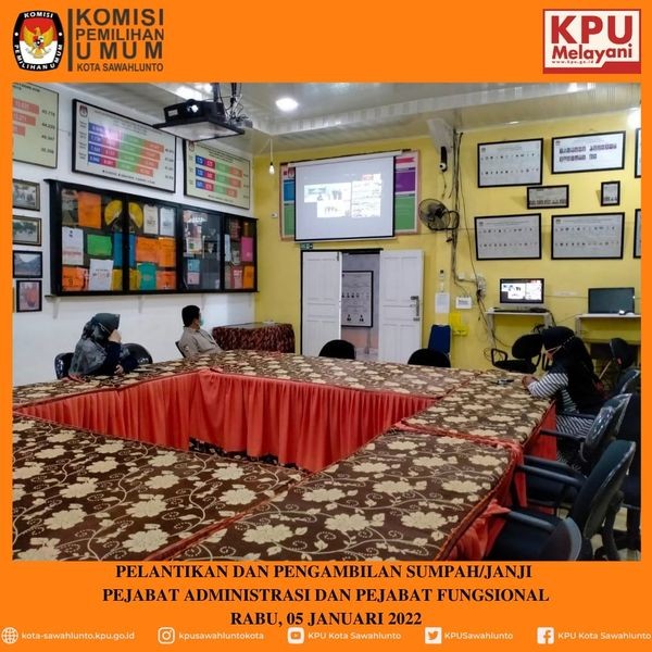 Komisi Pemilihan Umum (KPU) Kota Sawahlunto ikuti Zoom Meeting Pelantikan Pejabat di Lingkup Sekretariat KPU Provinsi dan Sekretariat Kabupaten/Kota Se Indnonesia yang diselenggarakan oleh KPU RI, Rabu (05/01). Acara yang dimulai pukul 14.00 WIB ini, dihadiri secara langsung oleh KPU RI, Ilham Saputra.