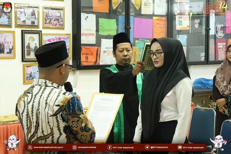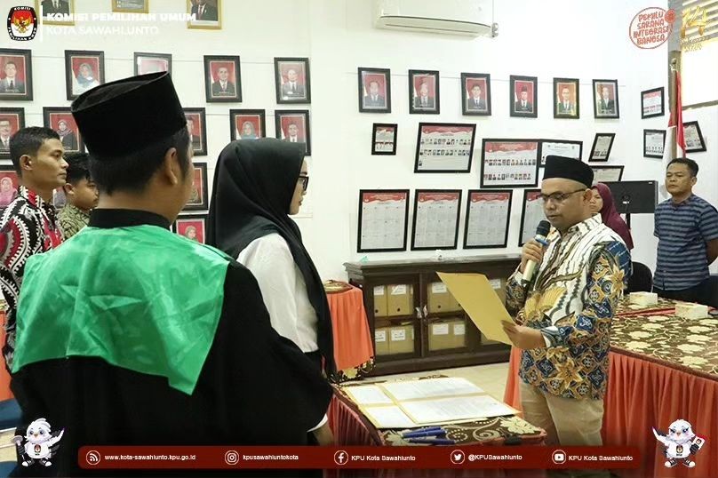 Hamdani selaku Ketua KPU Kota Sawahlunto memimpin pengambilan sumpah yang didampingi oleh rohaniawan. Hamdani menyampaikan ucapan selamat kepada PPS yang telah dilantik. Semoga anggota PPS yang telah dilantik tersebut untuk bisa menyesuaikan diri dan memahami regulasi dan mekanisme yang ada.