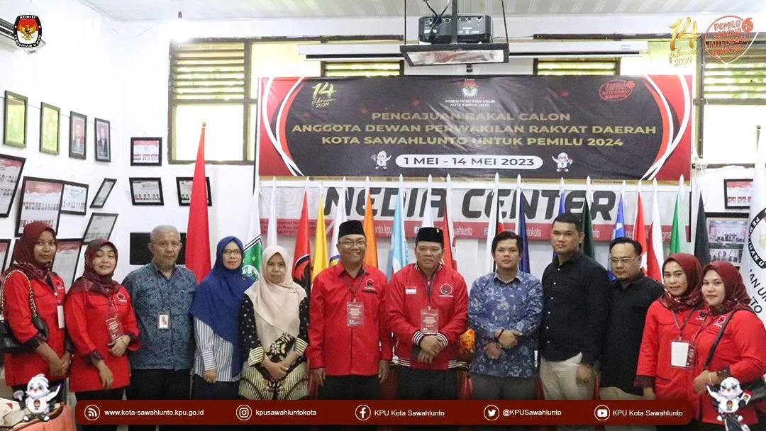 Sawahlunto, kota-sawahlunto.kpu.go.id - Pada hari ke-11 pengajuan Bakal Calon Anggota DPRD Kota Sawahlunto, Partai Demokrasi Indonesia Perjuangan (PDI Perjuangan) merupakan Partai Politik yang pertama menyerahkan dokumen pengajuan ke KPU Kota Sawahlunto, Kamis (11/05) pada pukul 10.00 WIB.