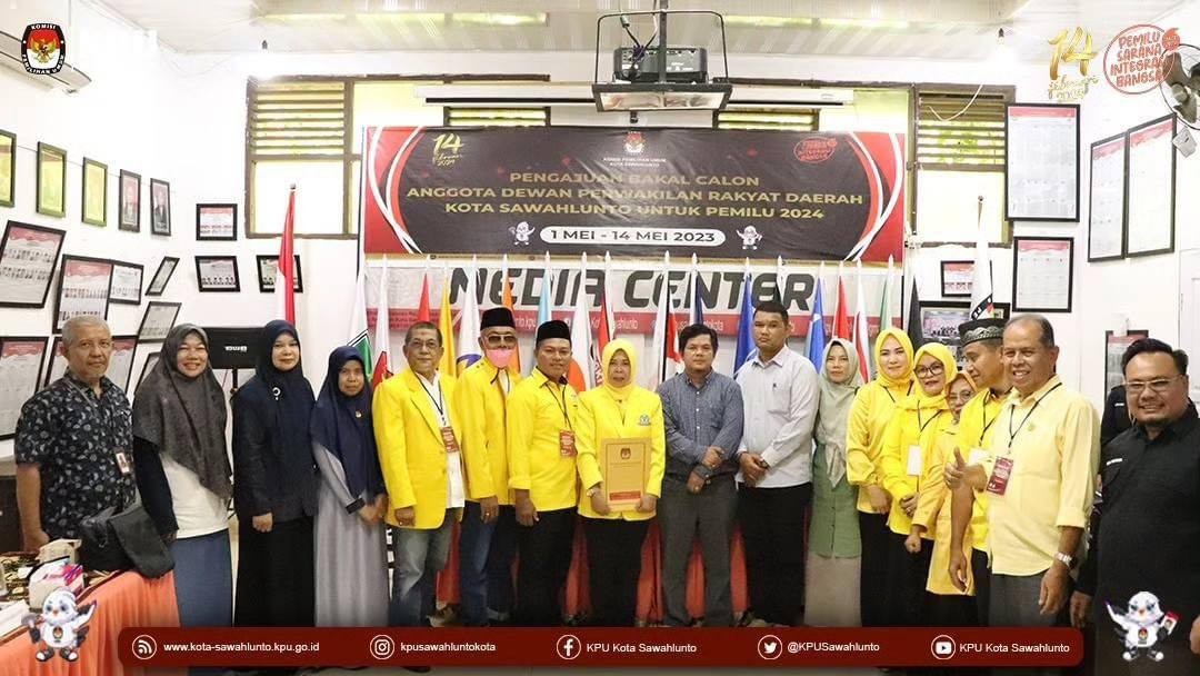 Partai Golongan Karya (Golkar) mengajukan Bakal Calon Anggota DPRD Kota Sawahlunto 100% pada setiap Dapilnya yaitu dengan total 20 orang Bakal Calon dengan status pengajuannya diterima.