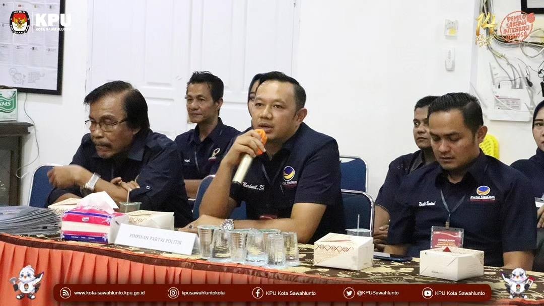 Sawahlunto, kota-sawahlunto.kpu.go.id - Pada hari ke-11 pengajuan Bakal Calon Anggota DPRD Kota Sawahlunto, Partai Nasdem merupakan Partai Politik yang kedua menyerahkan dokumen pengajuan ke KPU Kota Sawahlunto, Kamis (11/05) pada pukul 12.30 WIB.