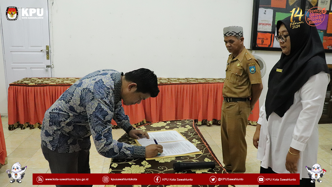 Sawahlunto, kota-sawahlunto.kpu.go.id - KPU Kota Sawahlunto melakukan Penetapan dan Penandatangan pakta integritas penggantian staf Sekretariat PPS Aur Mulyo, Senin (10/4). Kegiatan ini dilaksanakan pada Pukul 10.00 WIB bertempat di Ruang Rapat KPU Kota Sawahlunto.
