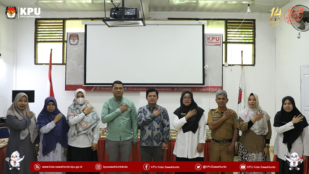 Kegiatan penandatanganan pakta integritas dihadiri oleh Komisioner, Sekretaris dan jajaran sekretariat KPU Kota Sawahlunto, Ketua PPS Aur Mulyo dan Staf Sekretariat.
