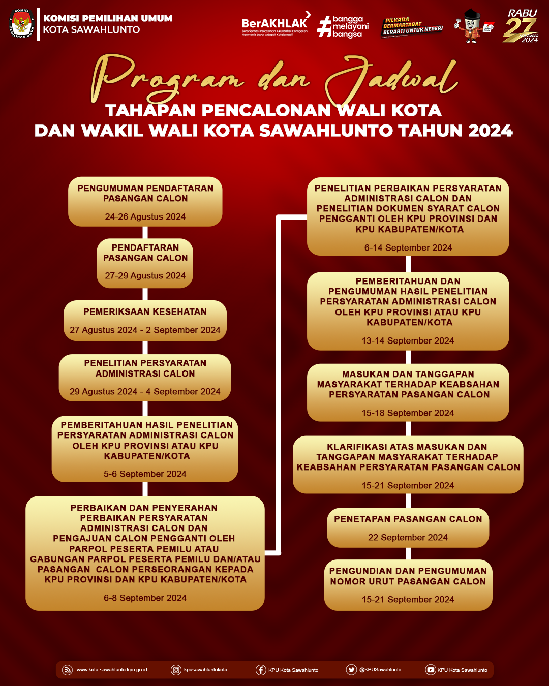 Program dan Jadwal Tahapan Pencalonan Wali Kota dan Wakil Wali Kota Sawahlunto Tahun 2024