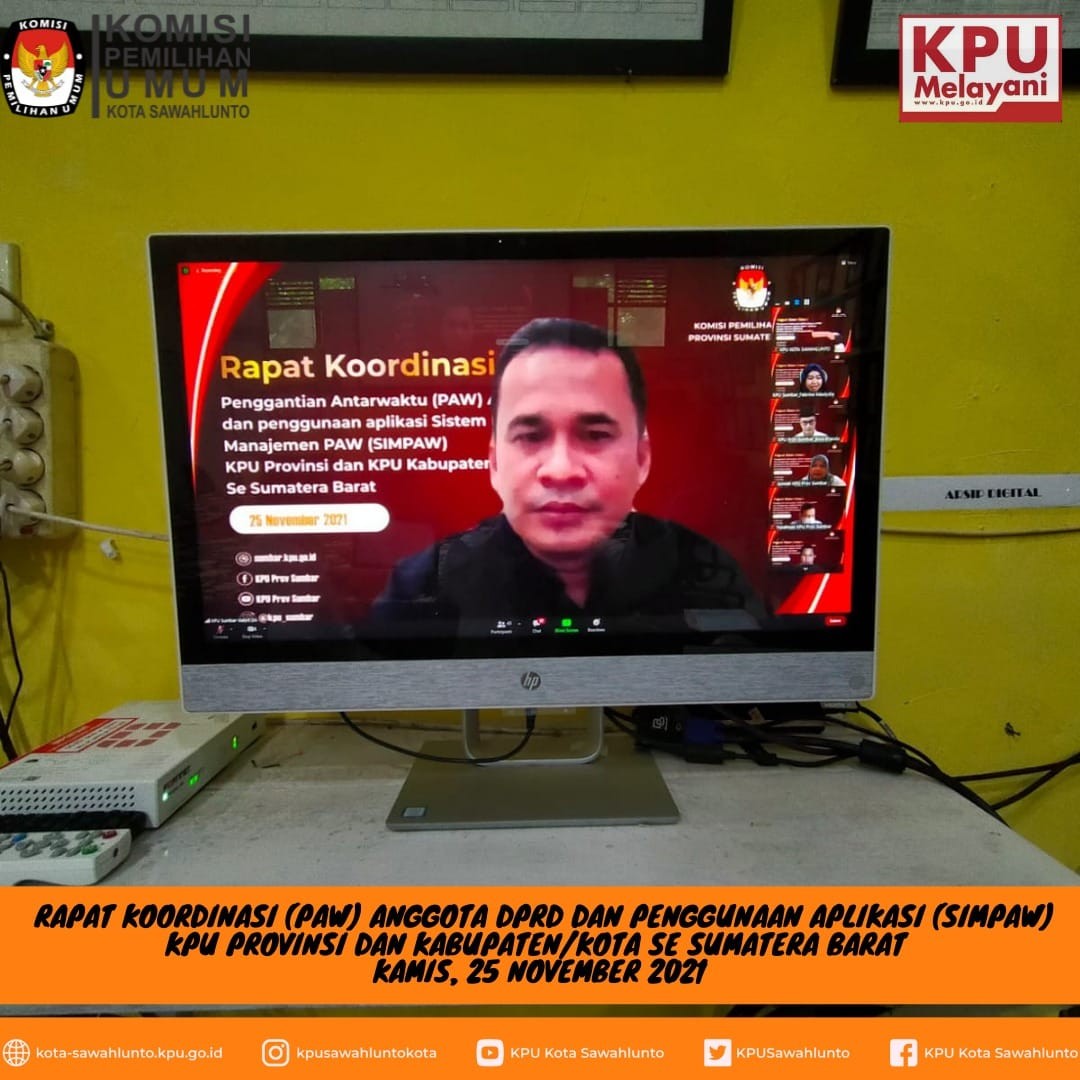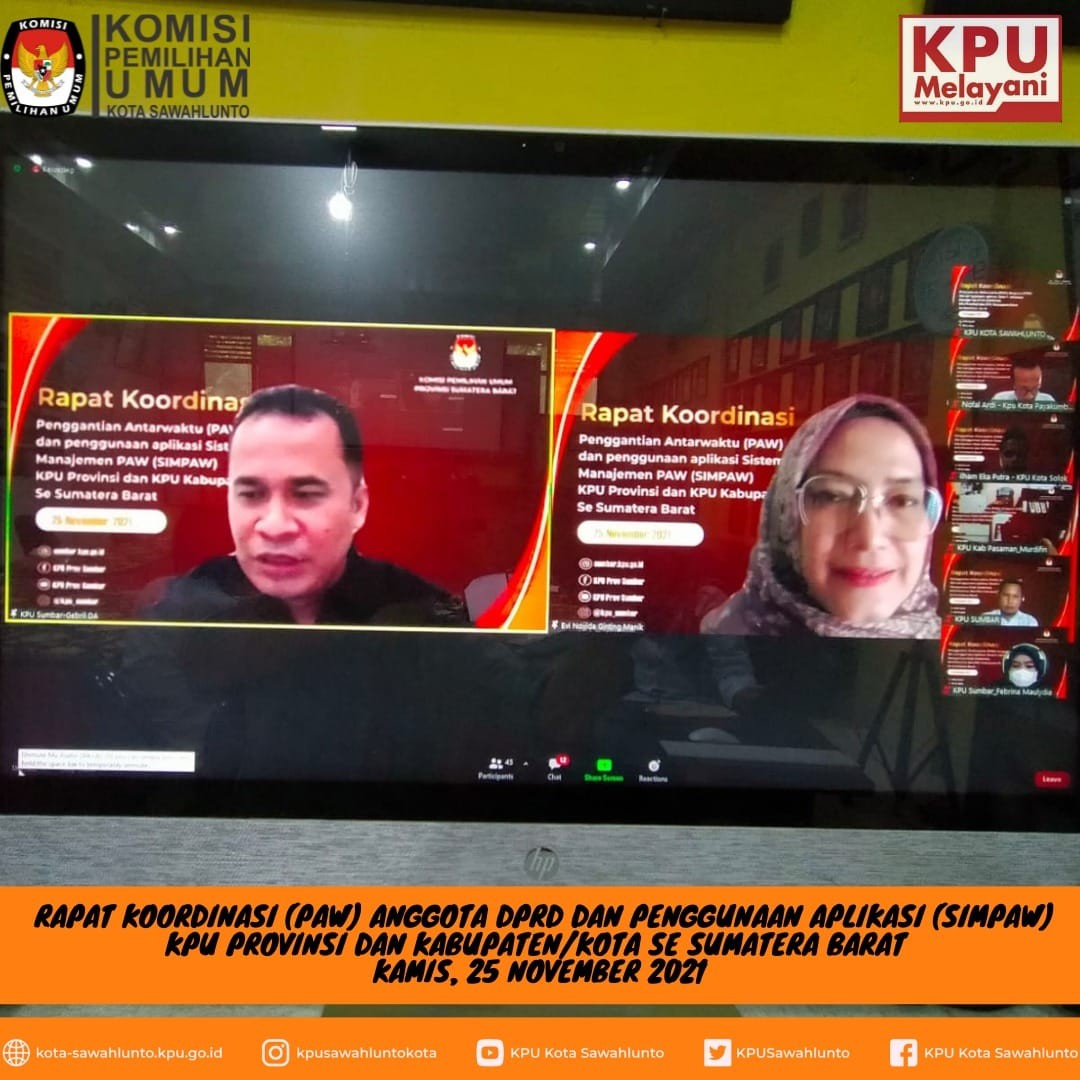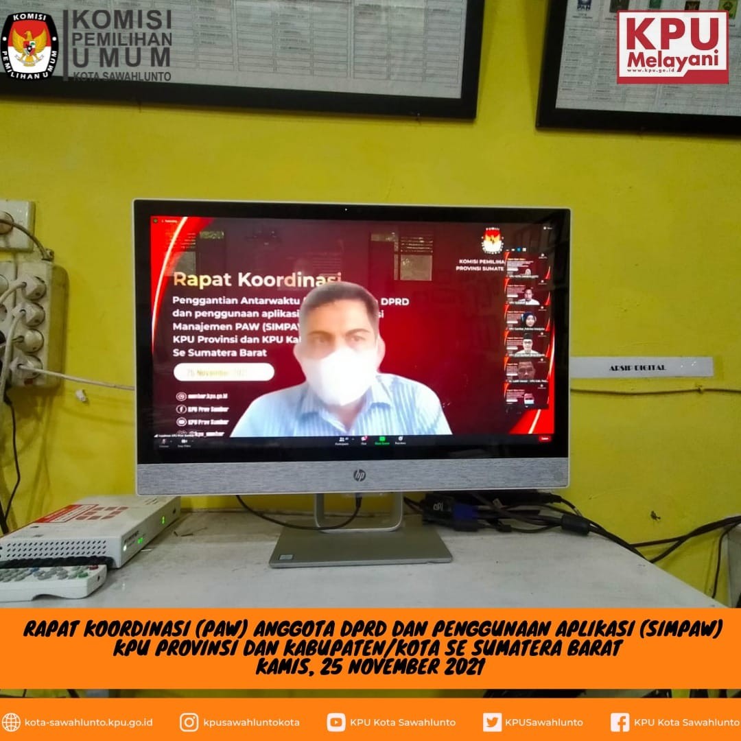 Sawahlunto, kota-sawahlunto.kpu.go.id – Hari ini Kamis (25/11) KPU Kota Sawahlunto mengikuti zoom meeting Rapat Koordinasi Penggantian Antar waktu (PAW) Anggota DPRD dan Penggunaan Aplikasi Sistem Informasi Manajemen PAW (SIMPAW) KPU Provinsi dan KPU Kabupaten/Kota
