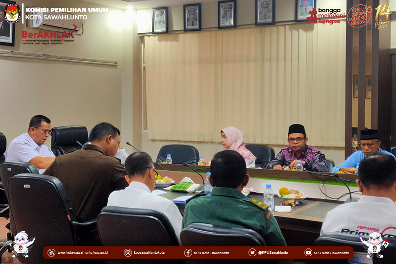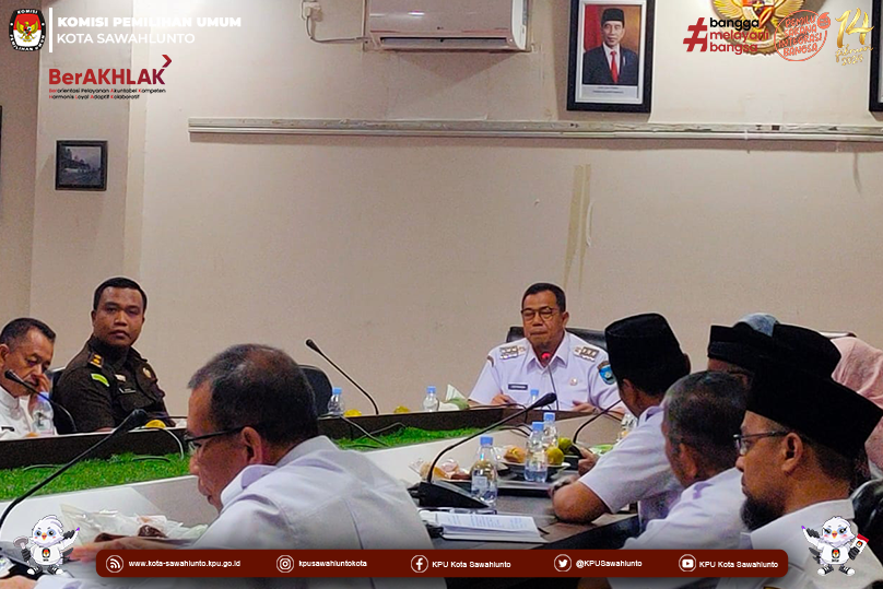 Ketua KPU Kota Sawahlunto menghadiri Rapat Forum Koordinasi Pimpinan Daerah Kota Sawahlunto di Kantor Balaikota Sawahlunto Rabu (22/11). Rapat membahas tentang Persiapan Pelaksanaan Pemilu, Netralitas ASN, dan Solodaritas terhadap Palestina.