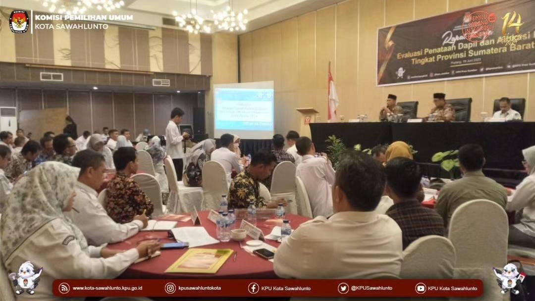 Sawahlunto, kota-sawahlunto.kpu.go.id - KPU Kota Sawahlunto mengikuti Rapat Kerja Evaluasi penataan Dapil dan alokasi kursi tingkat Provinsi Sumatera Barat Senin (19/6) Pukul 07:30 WIB s.d selesai. Kegiatan yang dilaksanakan di Hotel Pangeran Beach Padang tersebut dibuka oleh Ketua Provinsi Sumatera Barat Surya Efitrimen dan dilanjutkan pengarahan dari Komisioner.