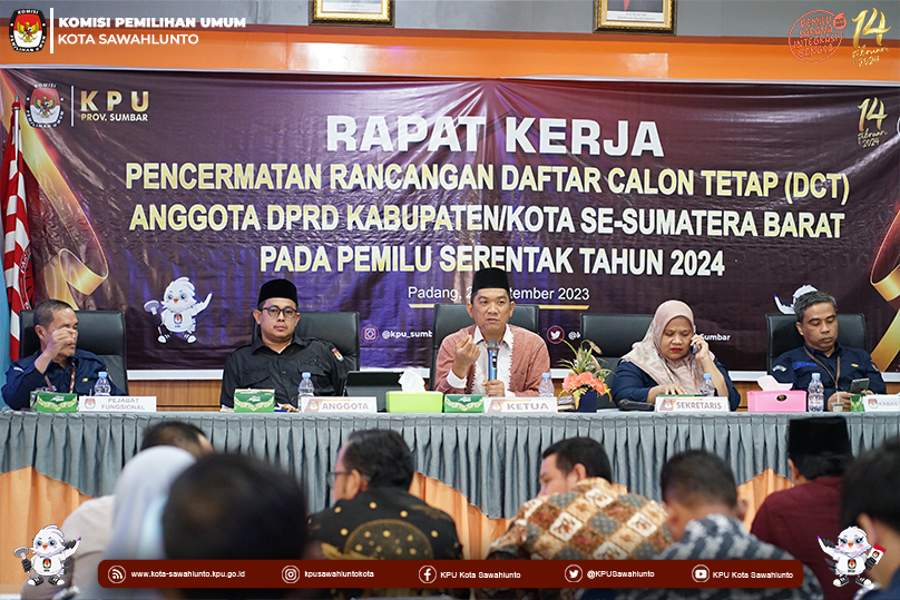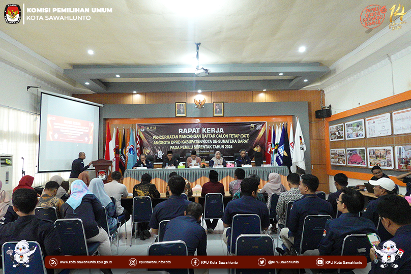 Sawahlunto, kota-sawahlunto.kpu.go.id - KPU Kota Sawahlunto, Selasa (26/9) KPU Kota Sawahlunto mengikuti Pencermatan Rancangan Daftar Calon Tetap (DCT) DPRD Kabupaten/Kota Pemilu Serentak 2024. Rakor diikuti oleh Divisi Teknis Penyelenggaraan Rika Arnelia dan Operator Silon Mika Lestiani. Kegiatan dimulai pada pukul 07.30 Wib yang bertempat di Aula KPU Provinsi Sumatera Barat.