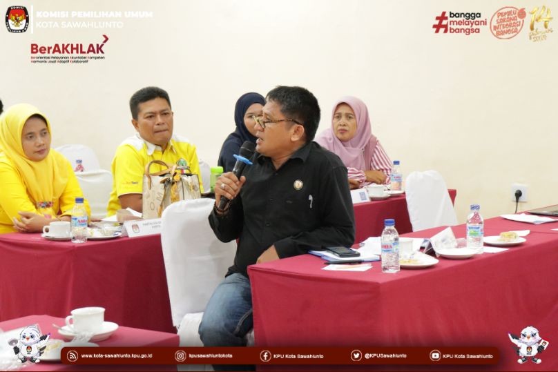menjelang Pelaksanaan Kampanye Pemilu pada 28 November mendatang, KPU Kota Sawahlunto melaksanakan Rapat Koordinasi Pelaksanaan Kampanye dan Bimbingan Teknis Aplikasi Sistem Kampanye dan Dana Kampanye (Sikadeka). Materi pada sesi pertama disampaikan langsung oleh Divisi Sosialisasi, Pendidikan Pemiluh, Partisipasi Masyarakat dan SDM KPU Kota Sawahlunto, Rony Yandri. Selain itu, juga turut disampaikan materi mengenai Mekanisme Penerbitan STTP oleh Kabag. Operasional Kepolisian Resor Sawahlunto.