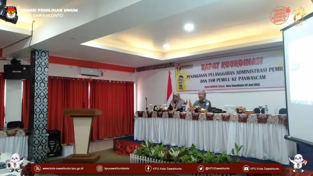 Sawahlunto, kota-sawahlunto.kpu.go.id - KPU Kota Sawahlunto menghadiri Rapat Koordinasi Penanganan Pelanggaran Administrasi Pemilu dan Terstruktur Sistematis Masif (TSM) Pemilu yang diadakan oleh Bawaslu Kota Sawahlunto bertempat di Hotel Cahaya Talawi Kota Sawahlunto, Kamis (22/6), Kegiatan dimulai Pukul 10.00 WIB.
