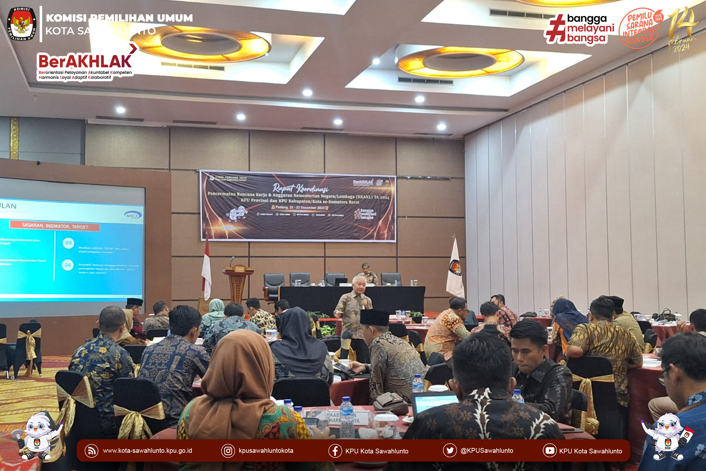 Sawahlunto, kota-sawahlunto.kpu.go.id - KPU Kota Sawahlunto mengikuti Rapat Koordinasi Pencermatan RKA-KL Tahun Anggaran 2024 yg dihadiri oleh KPU Kab/Kota se Provinsi Sumatera Barat, 22 s.d 23 Desember 2023, di Padang.