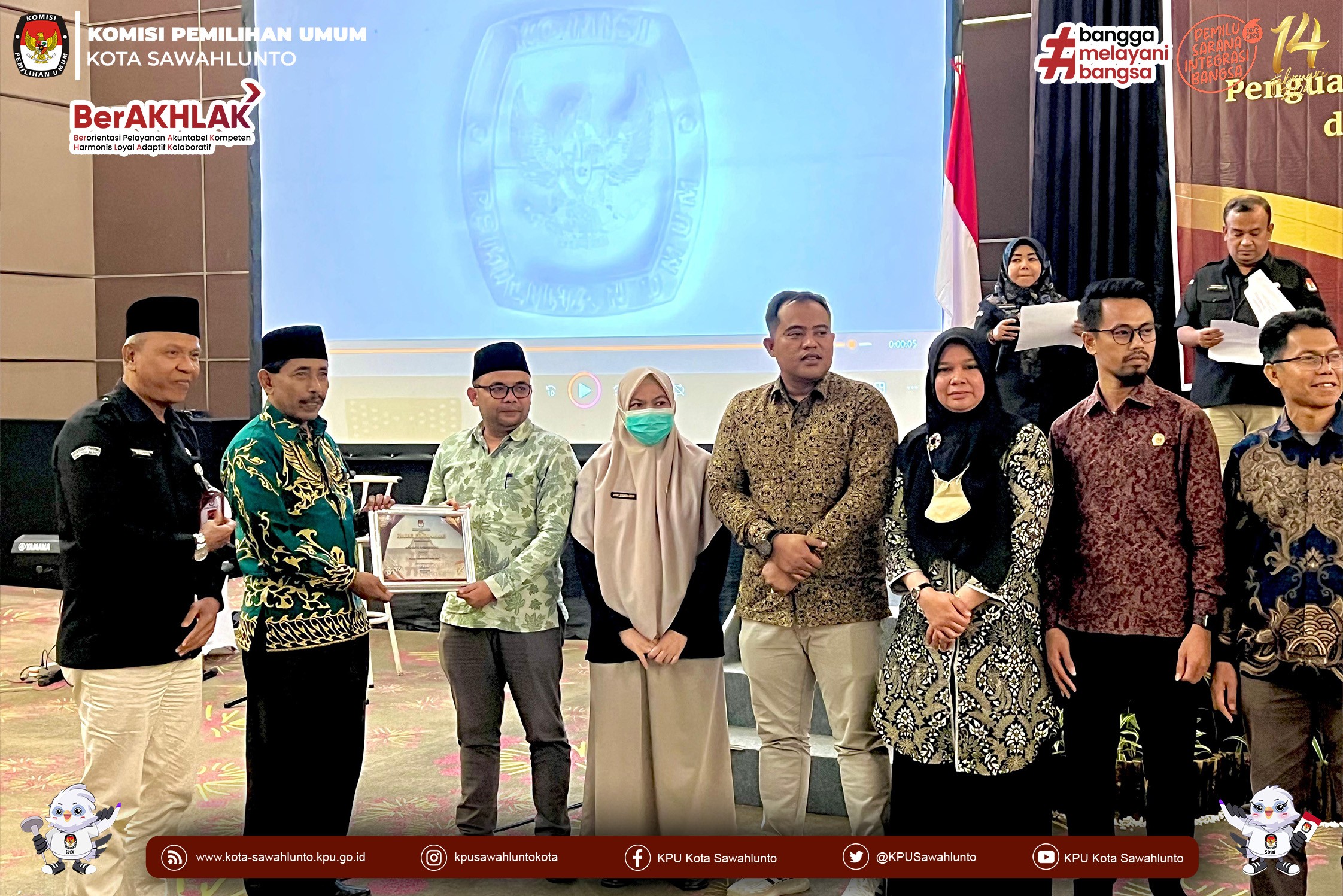 Acara ditutup dengan pemberian Penghargaan kepada KPU Kab/Kota yg berprestasi. KPU Kota Sawahlunto meraih penghargaan kategori Akurasi Data Pemilih Pemilu 2024.